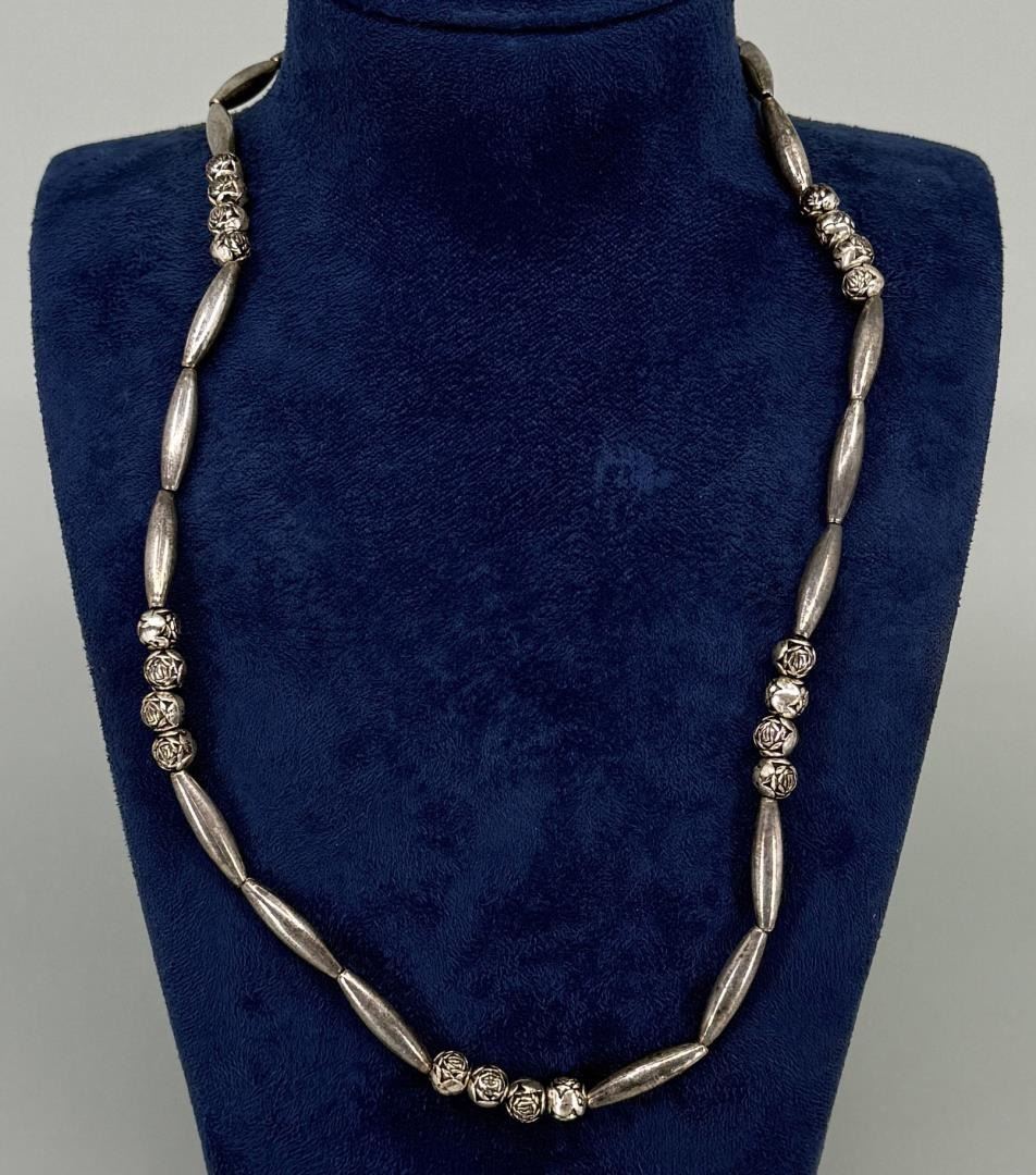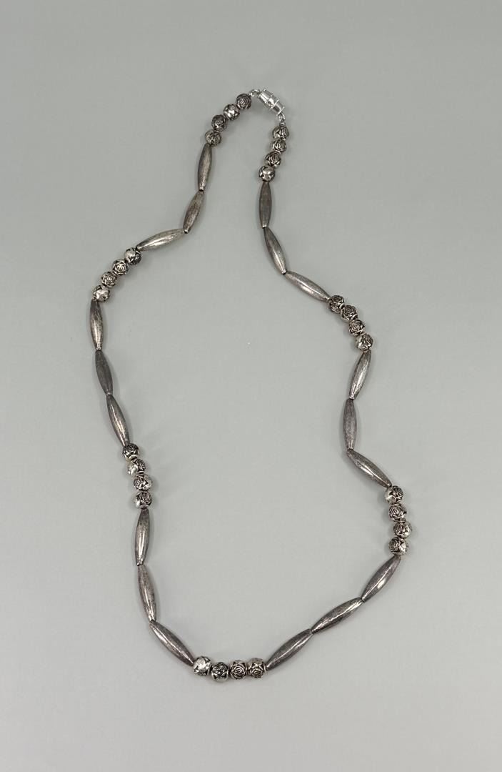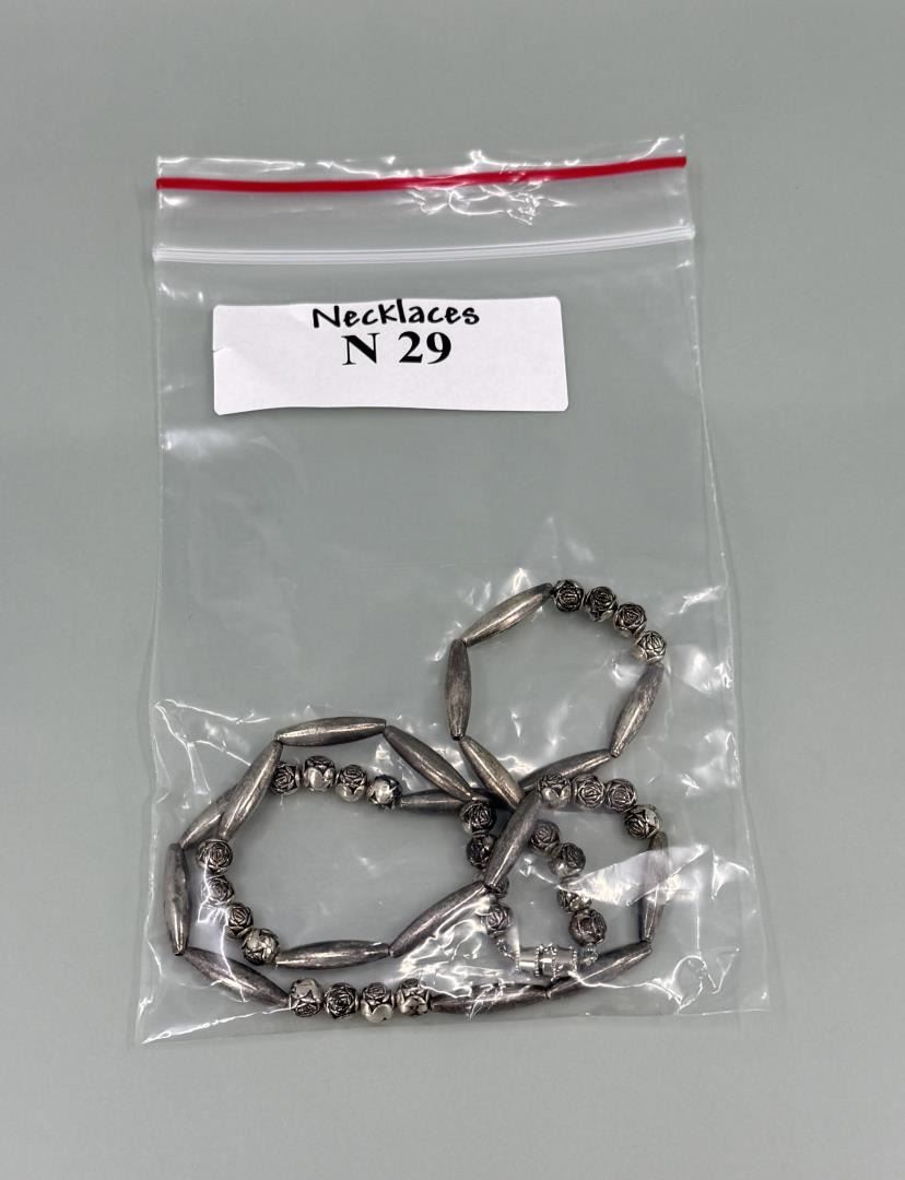 9 1/2" long closed. Nickel silver beads.