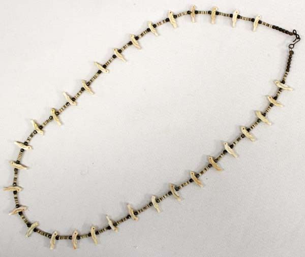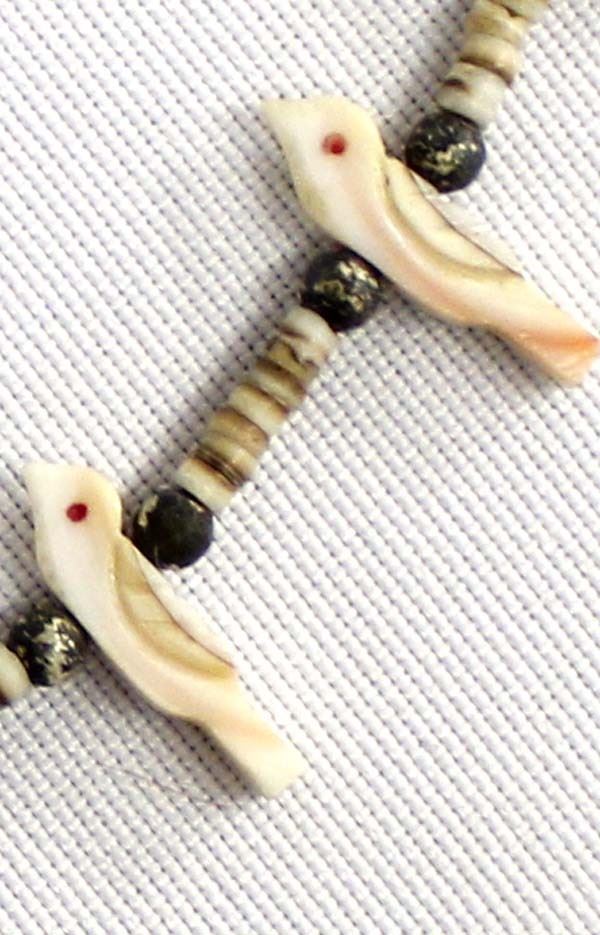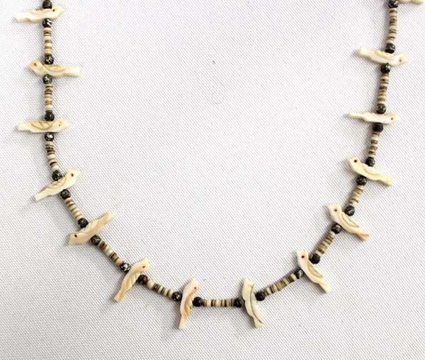 Native American Navajo Bird Fetish and Shell Heishi Necklace, measures 24''L end to end