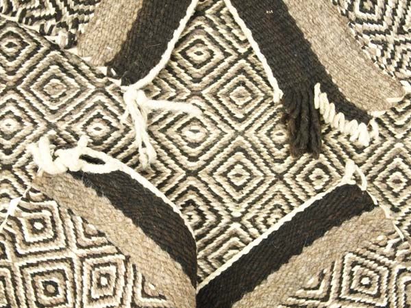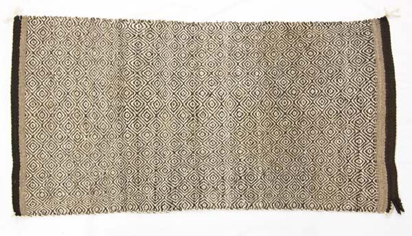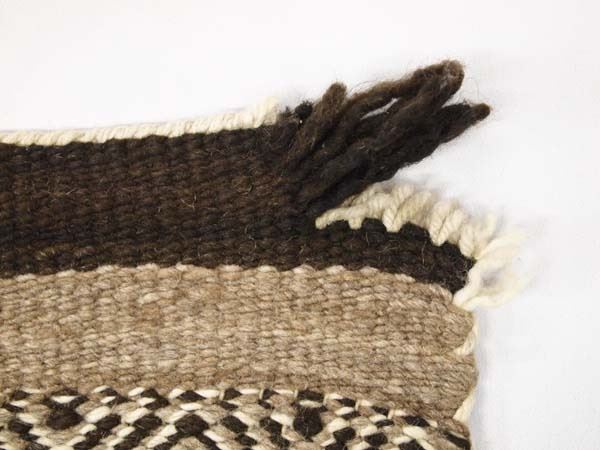 Native American Navajo Bird's Eye Twill Wool Double Sided Saddle Blanket, selvage damage on one corner, measures 52''L x 26''W, 3 tassels are intact