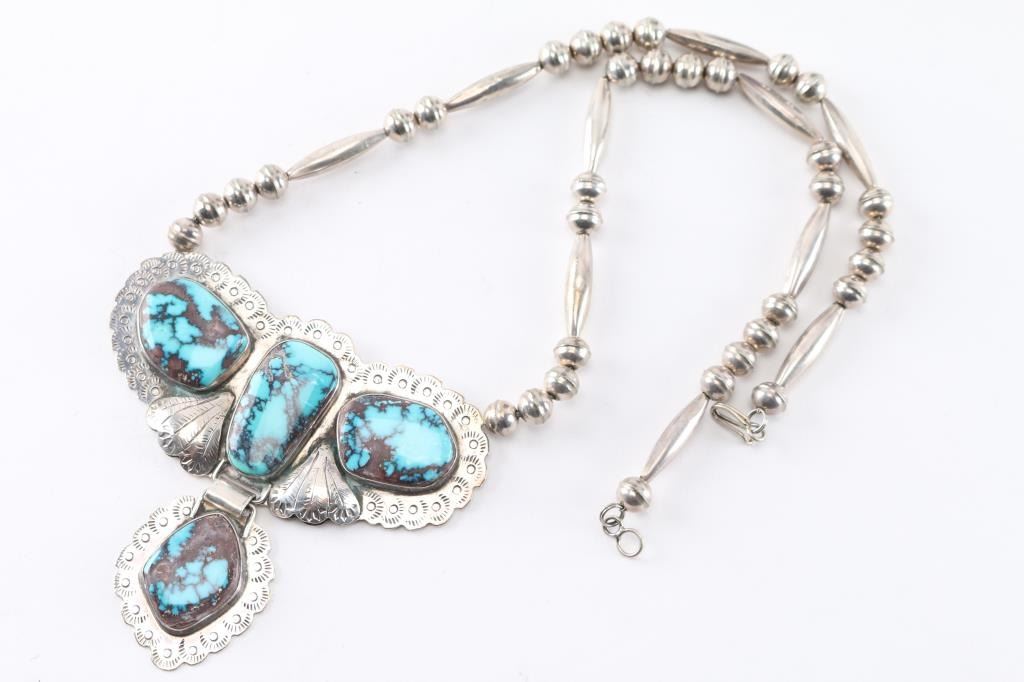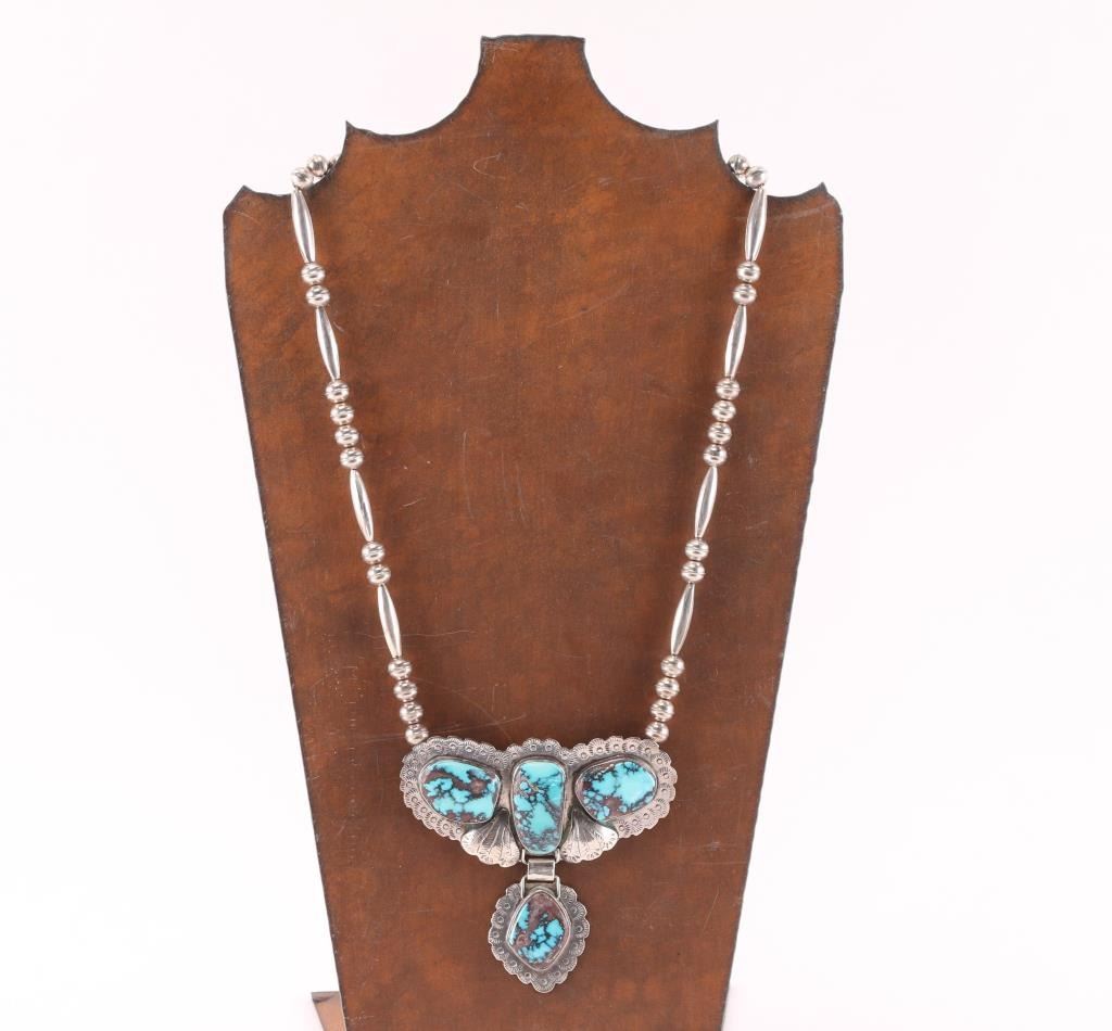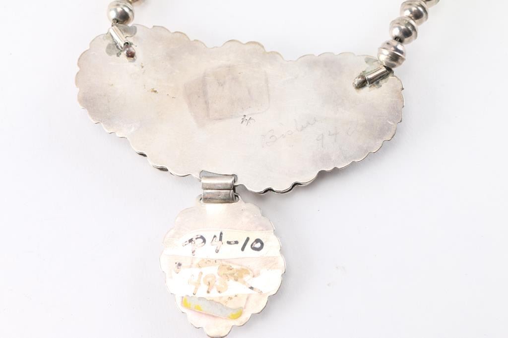 set in sterling silver in a dragonfly shaped on a sterling beaded necklace. Maker marked.