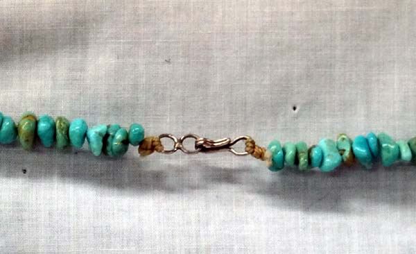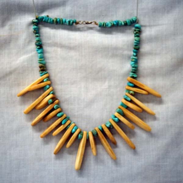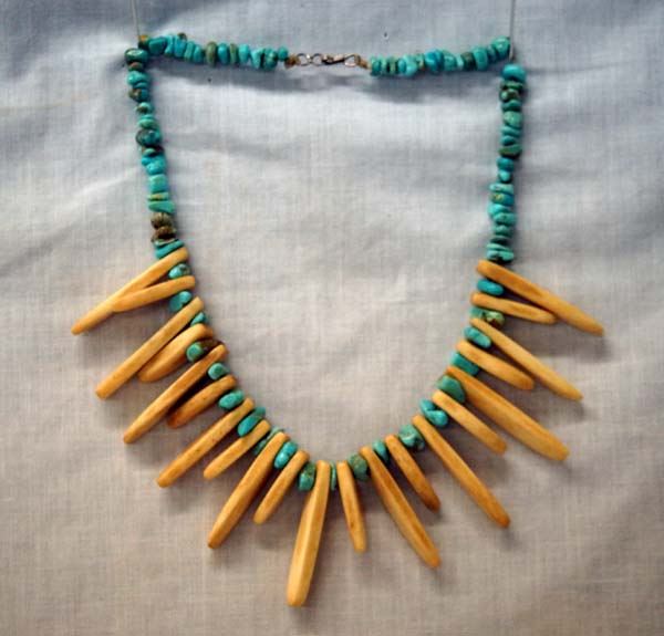 Navajo Bisbee Turquoise Bone & Bead Choker. This piece has elongated bone beads, some as long as 1.5'', and smaller natural turquoise beads. Measures approx. 14'' end to end.