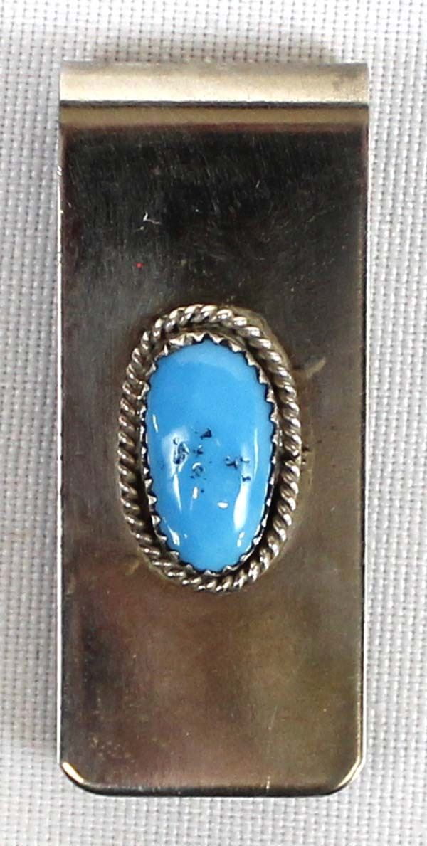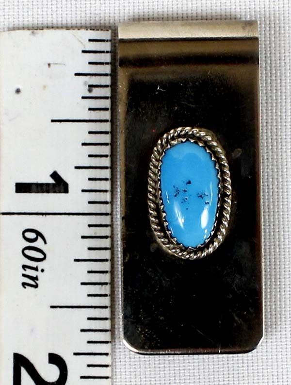 Native American Navajo Bisbee Turquoise Money Clip. This item measures 2'' in length.