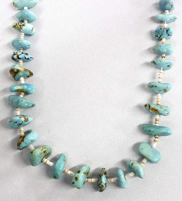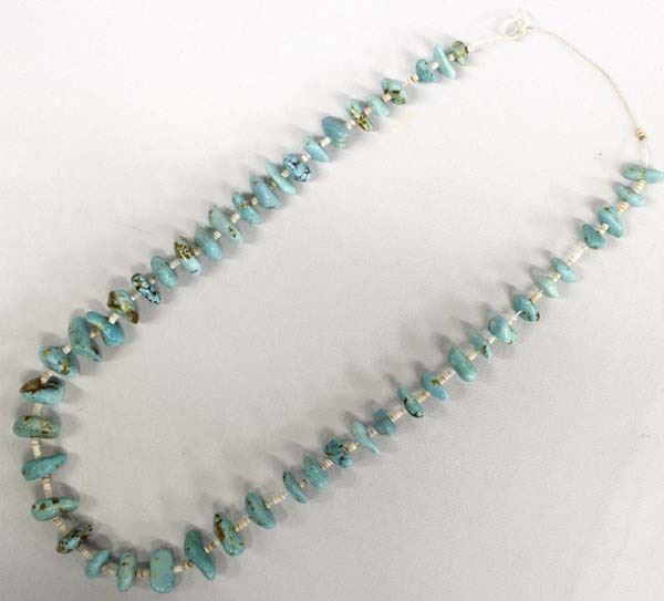 Vintage Native American Navajo Bisbee Turquoise Nugget and Shell Heishi Necklace, necklace measures 26''L end to end, string tied, largest nugget measures 1''L