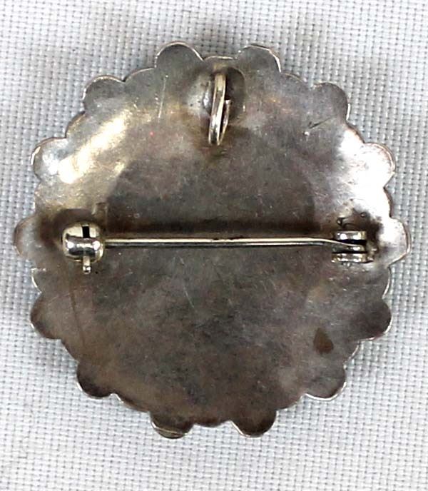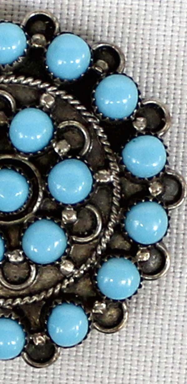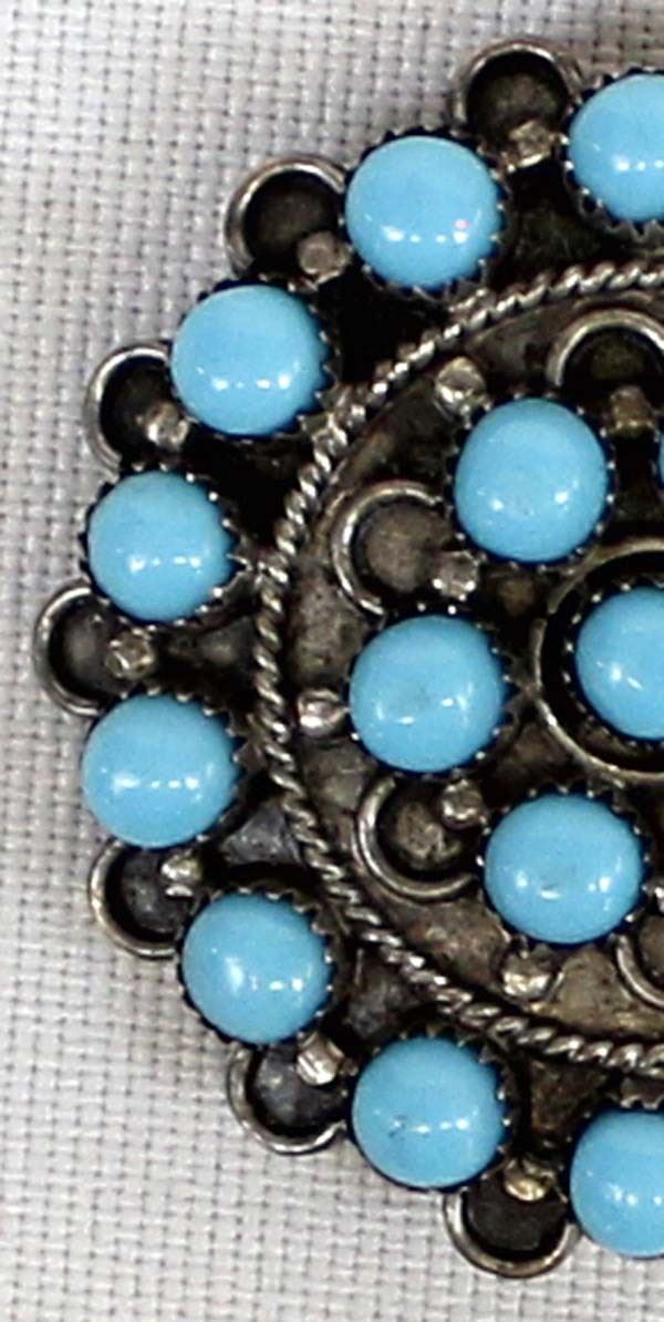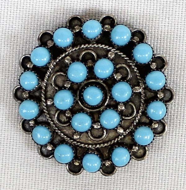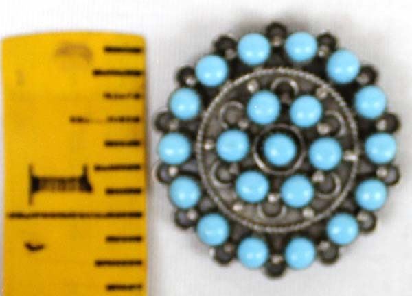 Navajo Bisbee Turquoise Sterling Silver Pin/Pendant. Measures 1/2'' in diameter.