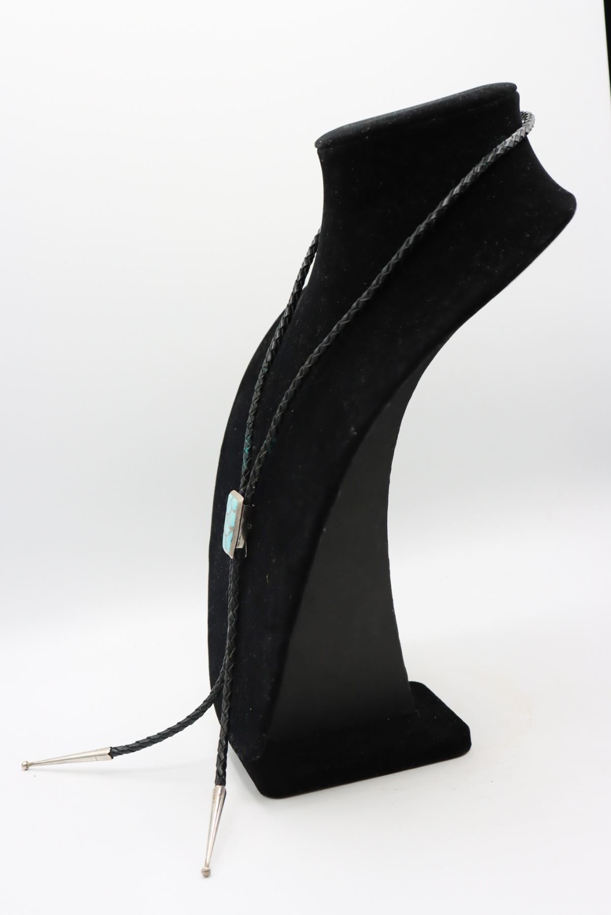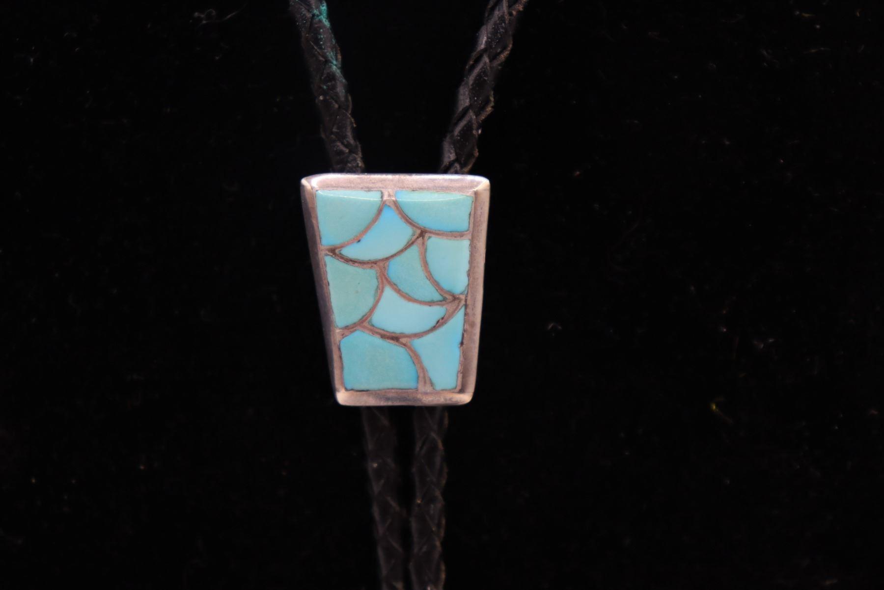 Navajo Bolo Tie, Inlaid Turquoise Design