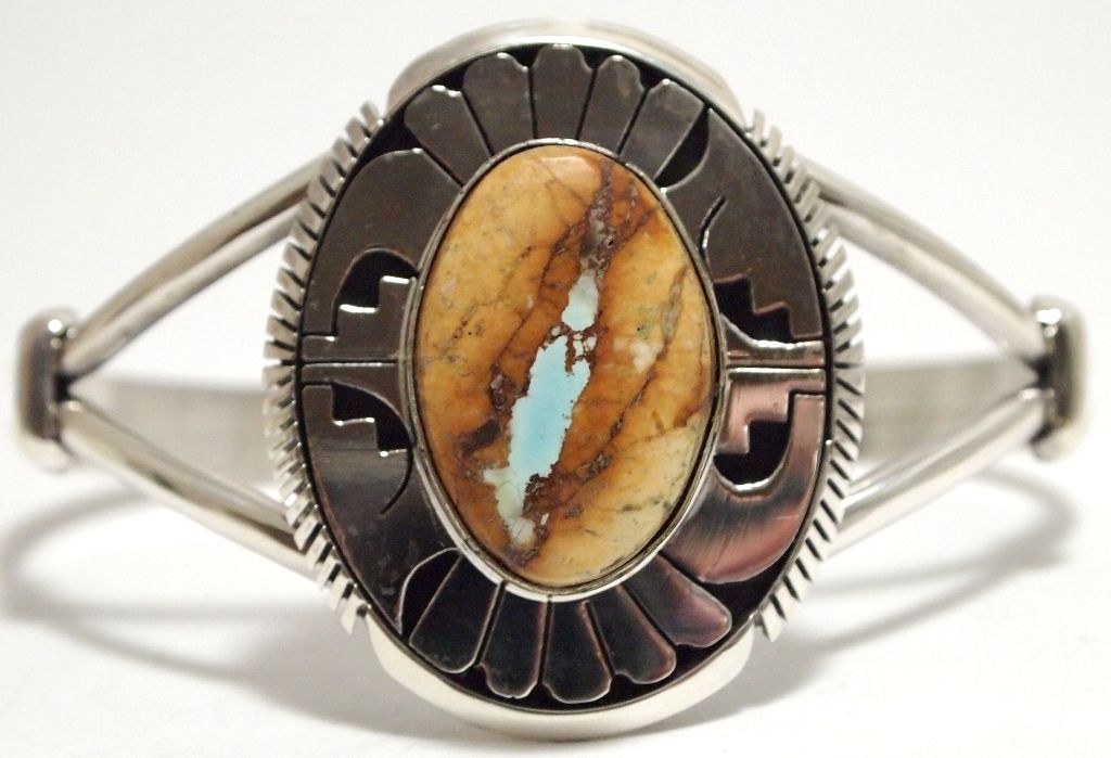 Navajo Boulder Turquoise Sterling Silver Cuff Bracelet - Eugene Belone