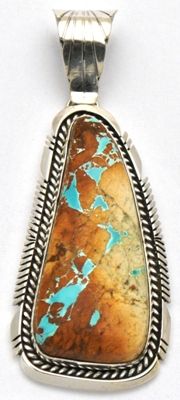 Navajo Boulder Turquoise Sterling Silver Pendant - Eugene Belone
