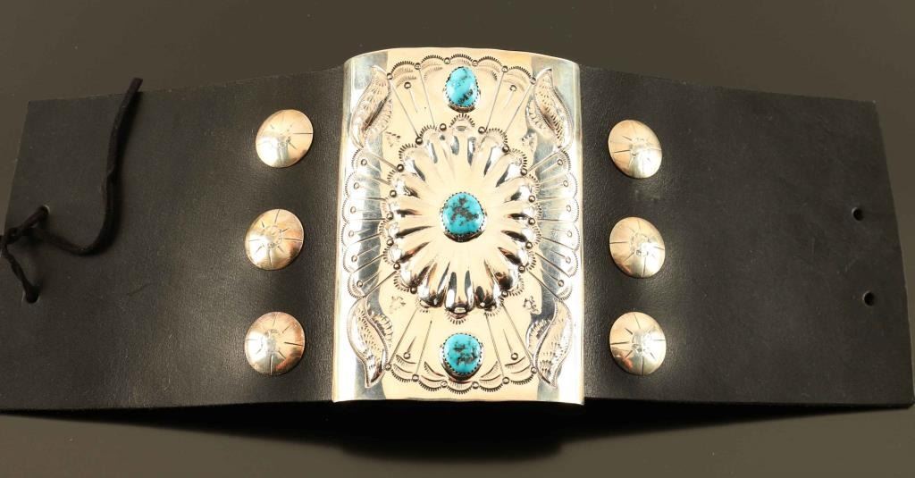 Sterling and turquoise hammered bow guard made by Dale and Crystal Morgan, very nice appears to not have been worn.