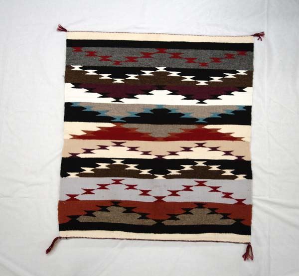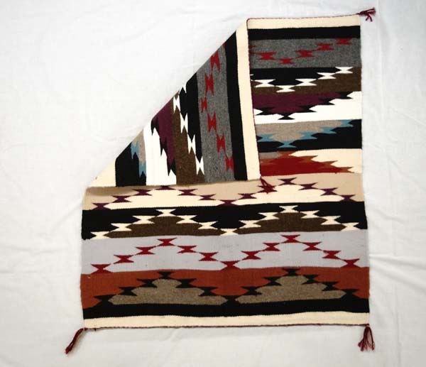 Navajo Bow Tie Design Textile Rug, measures 36.5''L x 32''W, four cornered tassels intact, beautiful colors, tight weave, and very clean