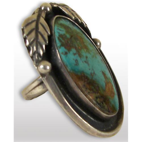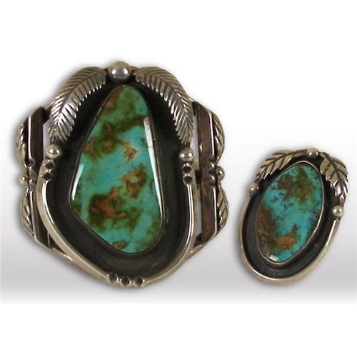 Navajo Bracelet & Ring, Turquoise Cabochons, Bracelet is 2 1/4" tall x 2 1/8" wide (1 1/4" at opening), Stamped JM, Ring is 1 1/2" tall x 1" wide (5/8" diameter of loop)