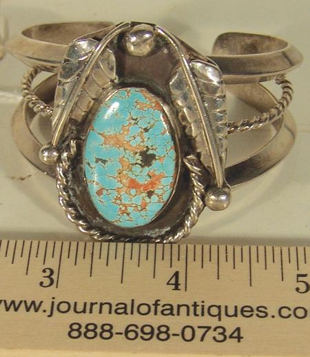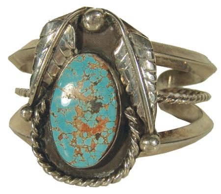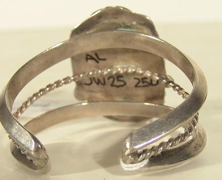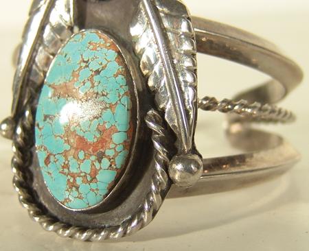 Classic large stone turquoise and silver bracelet with single twist wire accent. Condition: very good. 5-5/8" plus 7/8" gap x 2" wide