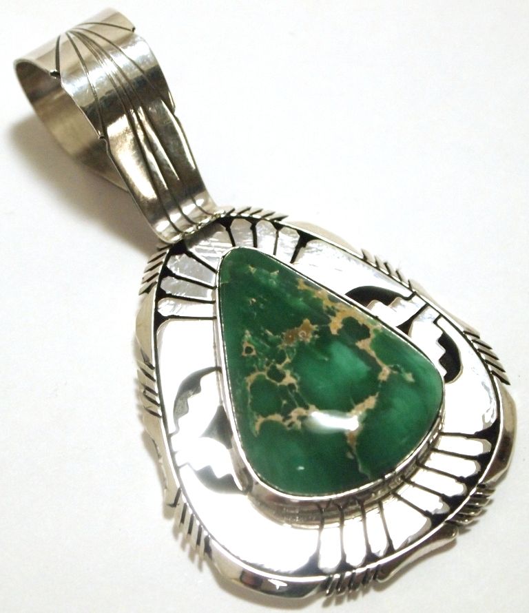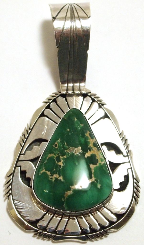 Navajo Broken Arrow Turquoise Sterling Silver Pendant - Eugene Belone
