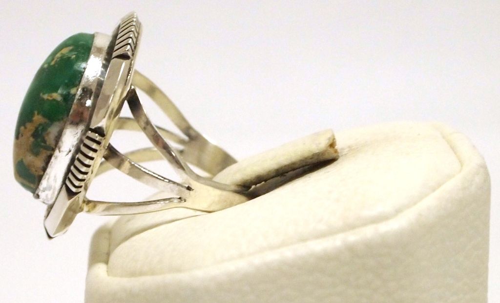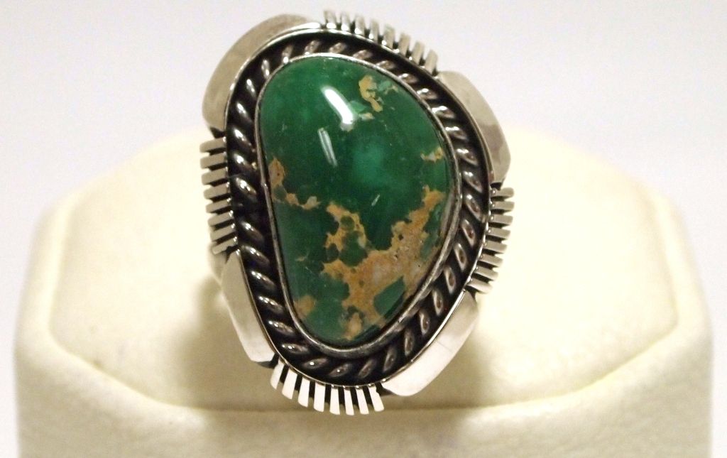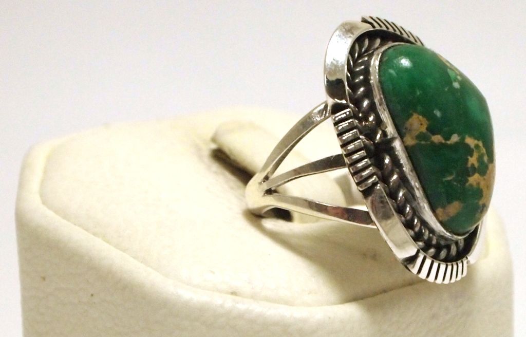 Navajo Broken Arrow Turquoise Sterling Silver Women's Ring - Eugene Belone