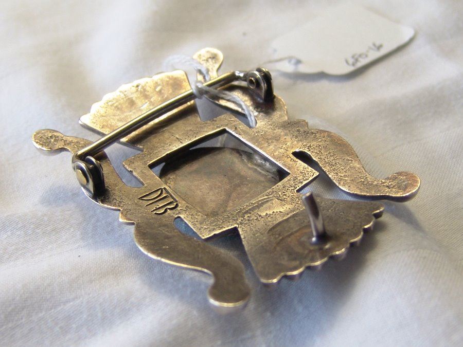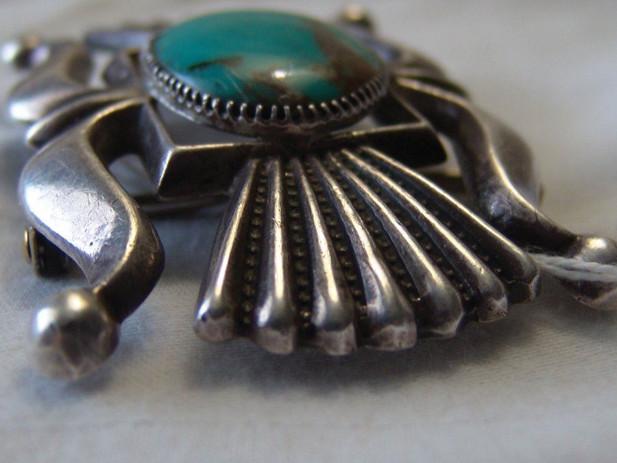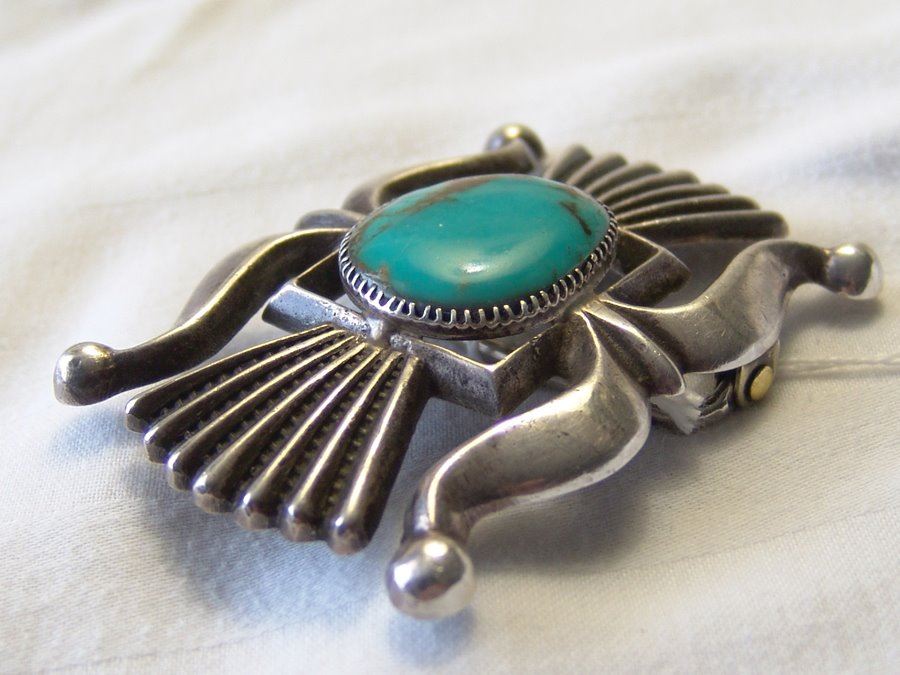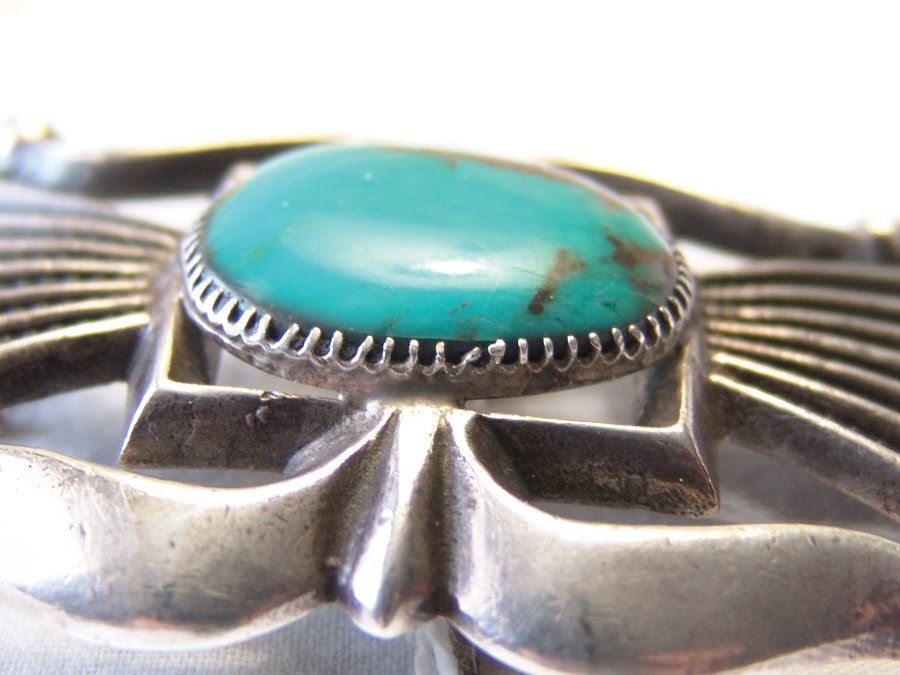 Heavier gauge vintage all silver sand cast belt buckle with single turquoise stone and wonderful patina. Very good condition.,,2-1/4" x 2-7/8"