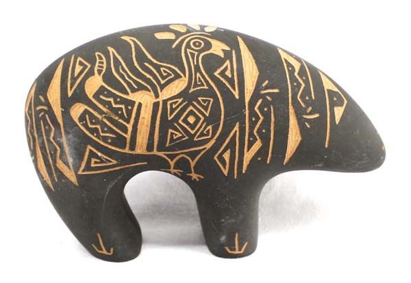 Native American Navajo Carved Ceramic Pottery Bear, measures 2'' x 5.5'' x 3.5'' and has artist's initials on the bottom