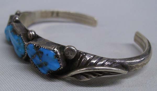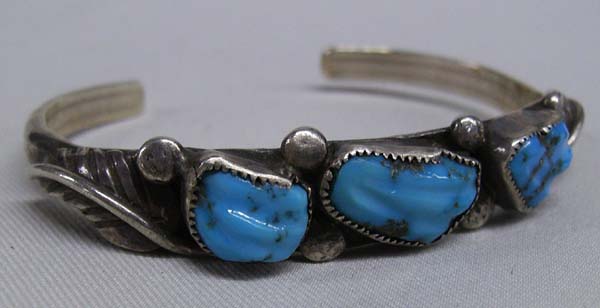 Native American Navajo carved turquoise signed cuff bracelet. 6.25'' Three stones. Stamped FE twice inside. Buyers Pay Actual Shipping and Handling Charges(see terms and conditions for more information).