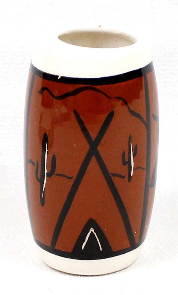 Native American Navajo Ceramic Pottery Scarf Slide, measures 2.5'' x 1'', beautiful hand painted glazed pottery featuring rain clouds and desert landscape