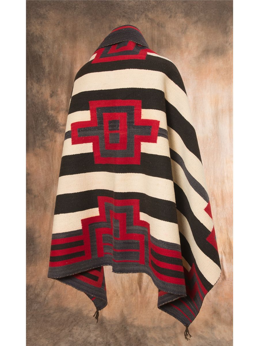Navajo Chief's Blanket. 5'9" x 3'10". An impressive, antique, second/third phase variant Chief blanket. This blanket uses the third phase nine-spot layout with the second phase bars and rectangular motifs. Wider than long, like the old classic shoulder blankets.  Woven from all long, staple Churro wool. Circa 1900.