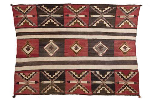 Navajo Second Phase Variant Chief's Blanket. 60" x 77". Red Mesa Pictorial. c. 1880. Rare as can be. Good condition and can be a lot better with a little bit of work. (est $8,000-10,000).