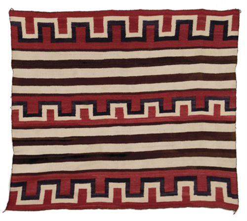 Navajo First Phase Variant Chief's Blanket. 67" x 59". Homespun wool. c. 1880s. Fine condition. (est $10,000-15,000).