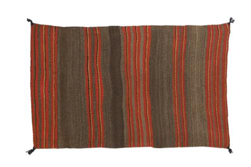Navajo Child's Wearing Blanket. 46" x 29". Twill weave. c. 1875-1885. Blue tested indigo, red is ravelled and re-plyed analine dyed bayeta. Fine condition. Fabulous! (est $4,500-6,500)