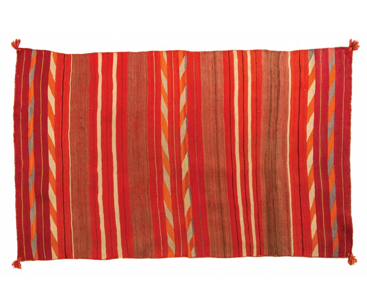 Navajo Child's Wearing Blanket. 4'5" x 2'8". Late classic child's wearing blanket woven from all smooth, long, staple Churro wool on a wool warp. All native handspun and hand dyed yarns. Circa 1885-1895