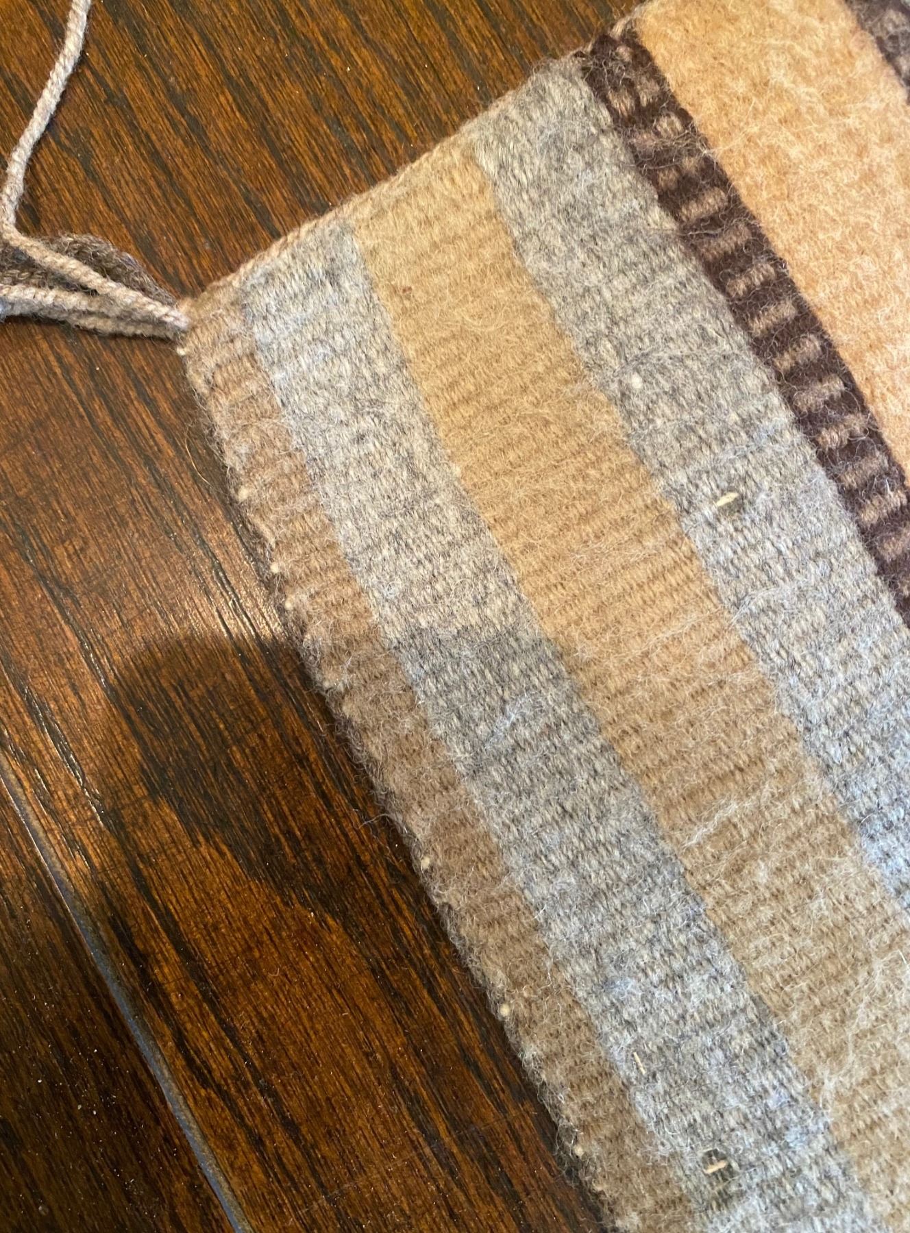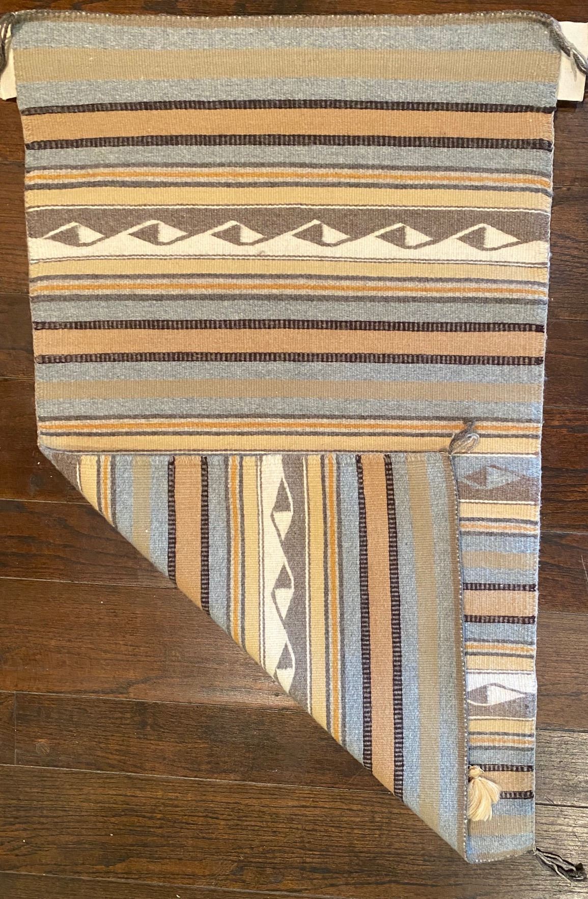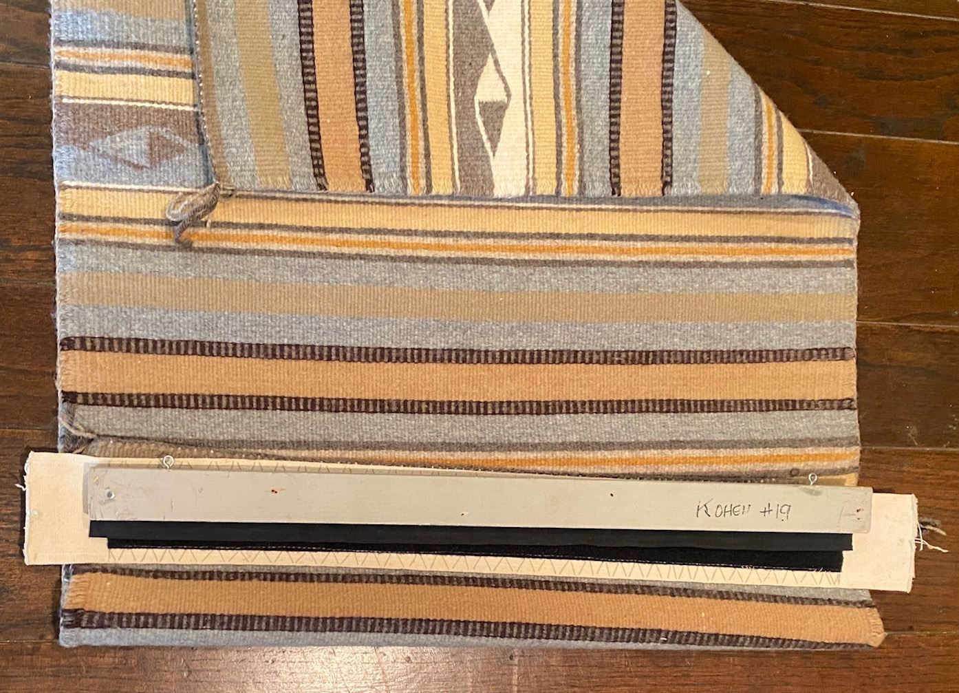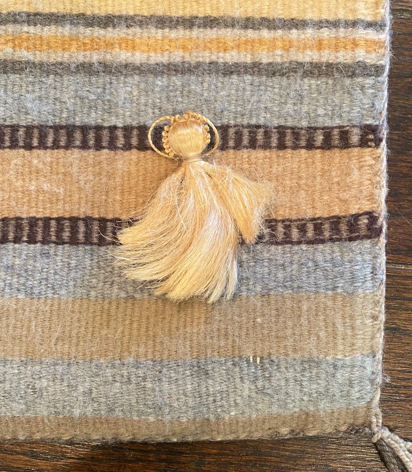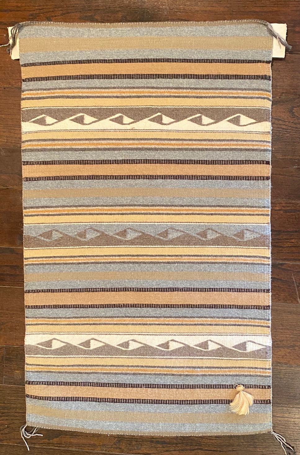 This Beautiful Chinle Weaving measuring 41-inches x 25-inches is out of Franzen Estate. The Weaver or someone added what appears to be a human hair Angel to the piece. It does have a some moth grazing. See pictures.