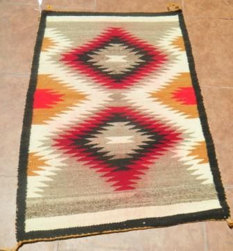 Navajo Chrystal Rug 28 by 42 inches. Some Bleeding. No tears or raveling. 1950's Shipping $20.00 Very Good