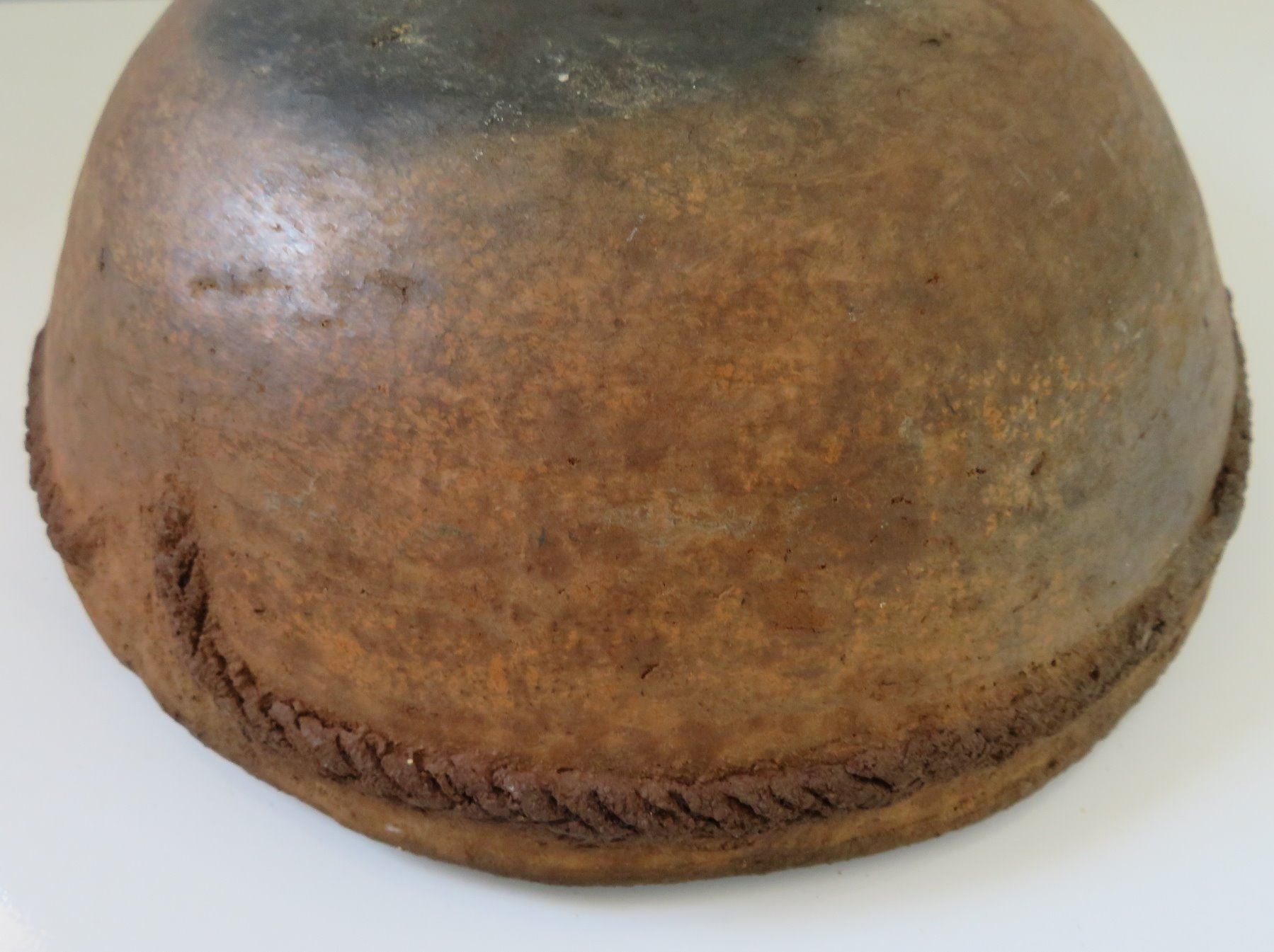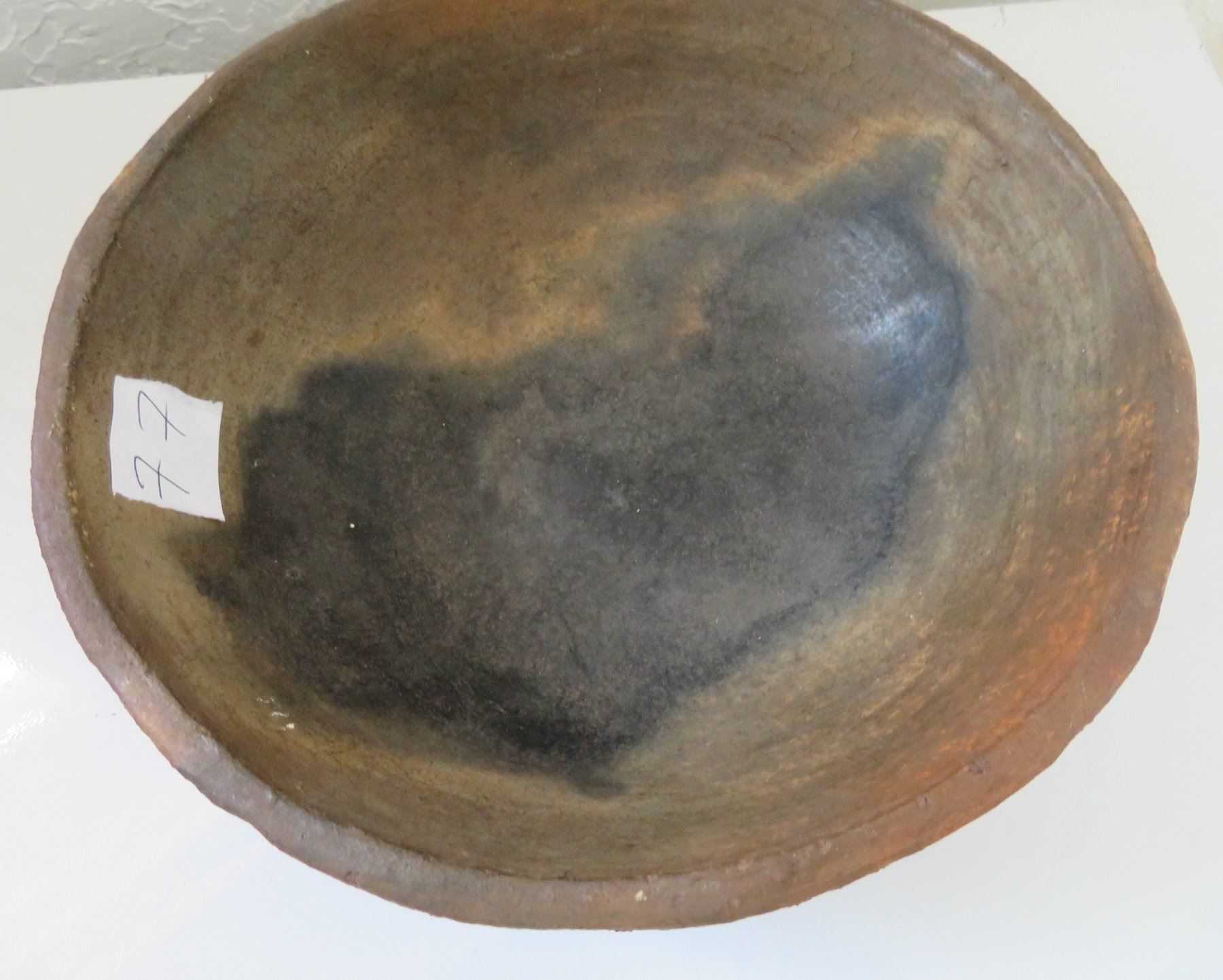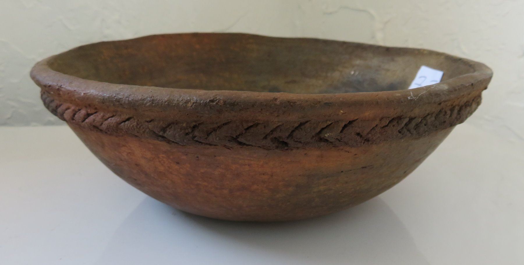 Navajo Clay Bowl, c. 1950s. Made of clay, the item measures 8 3/4" x 3". New Mexico. Condition: Good, some wear, see images. Shipping: $24.50 w/insurance and signature, due to weight.