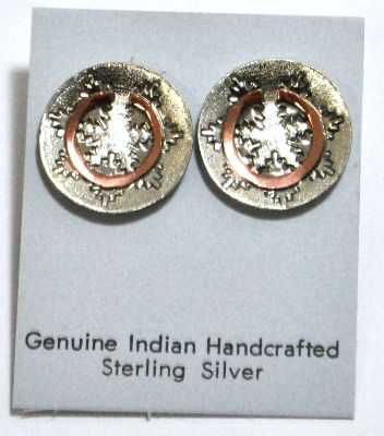 Navajo Copper Horseshoe over Sterling Silver Snowflake Post Earrings