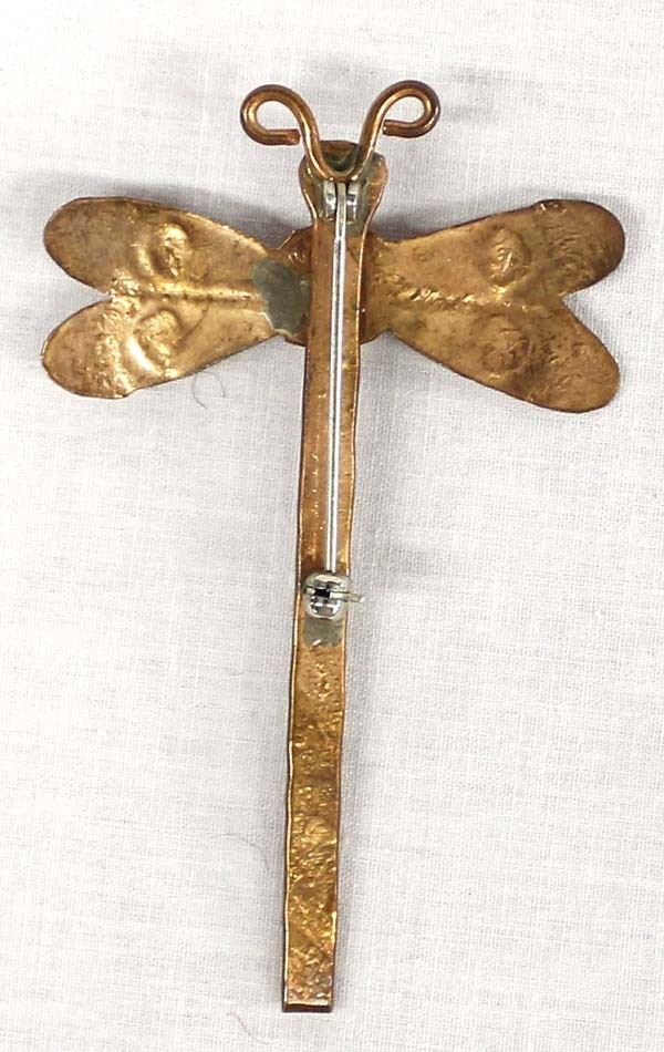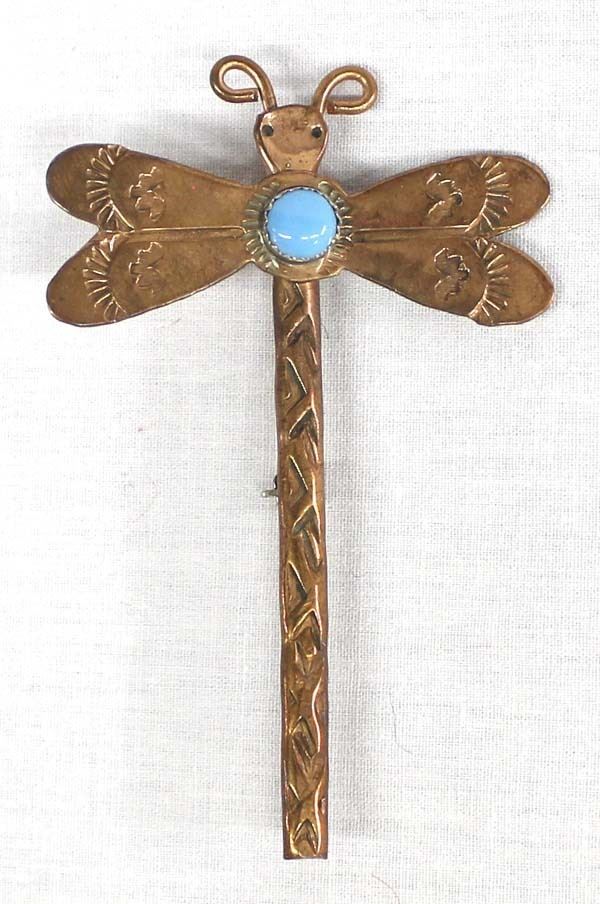 Native American Navajo Copper and Turquoise Dragonfly Pin, measures 3'' x 1.5''