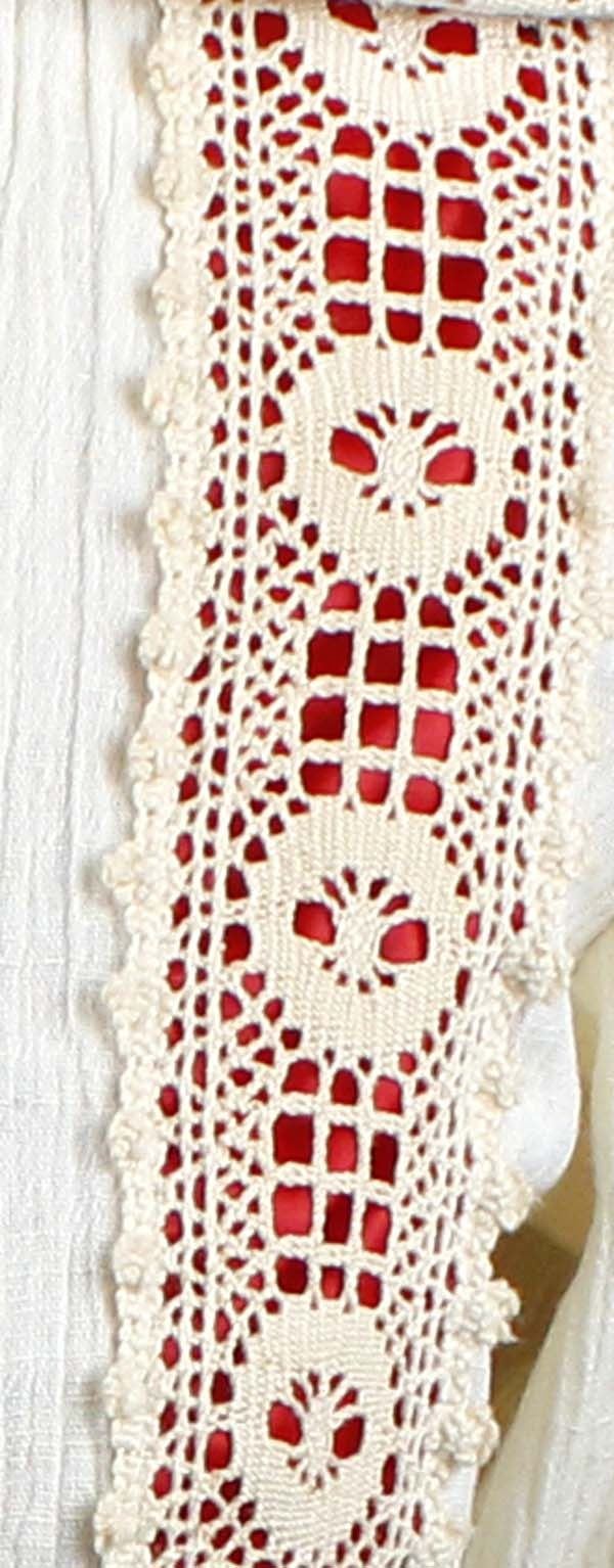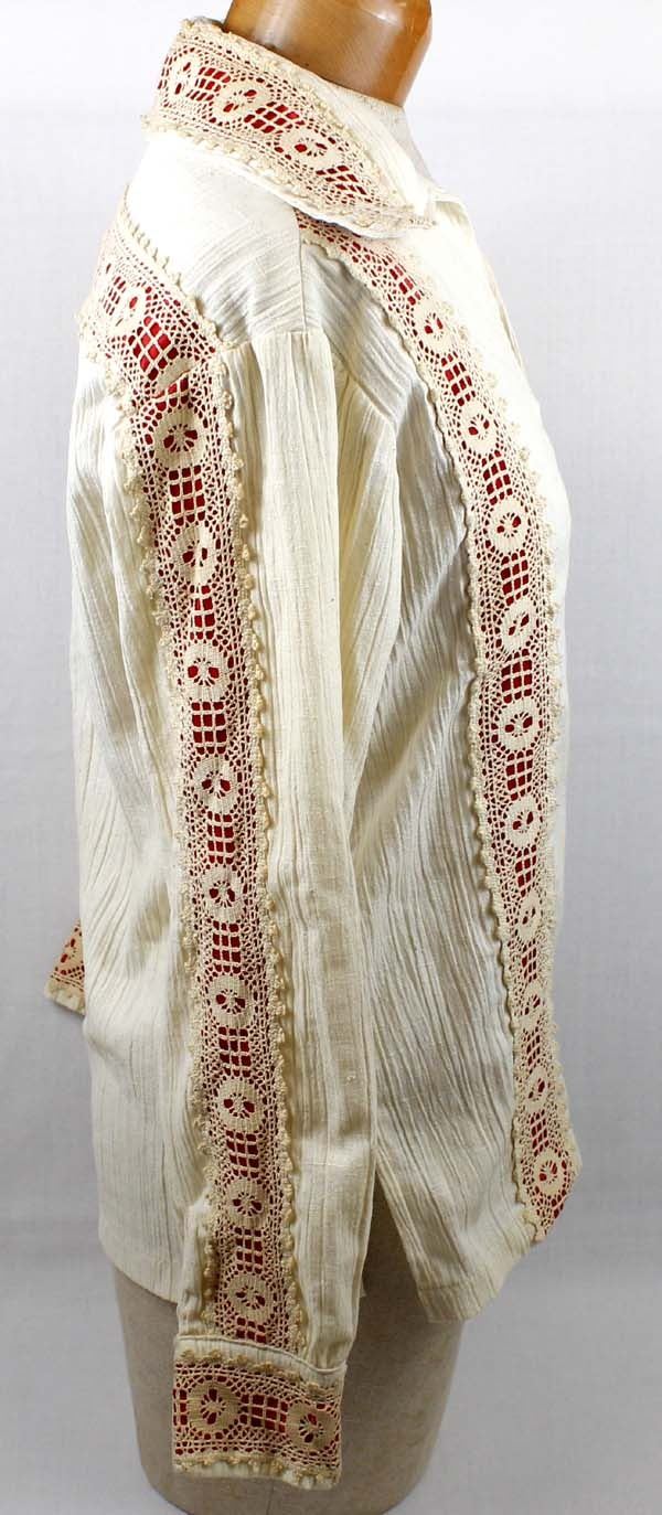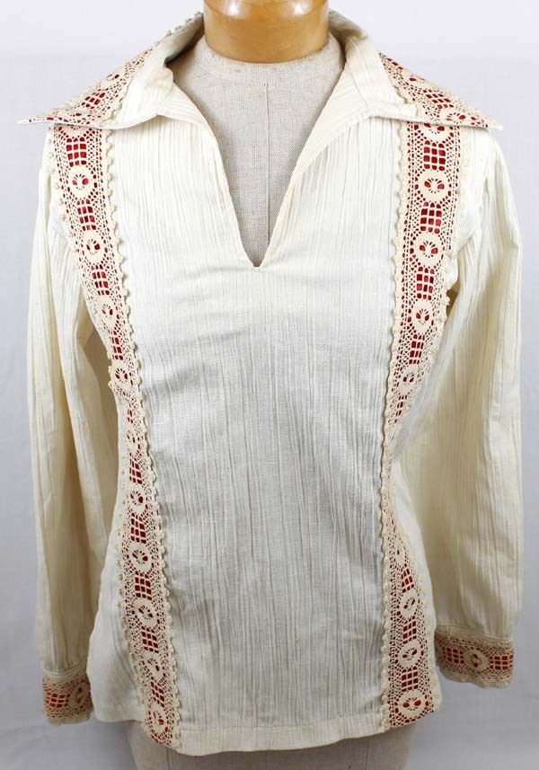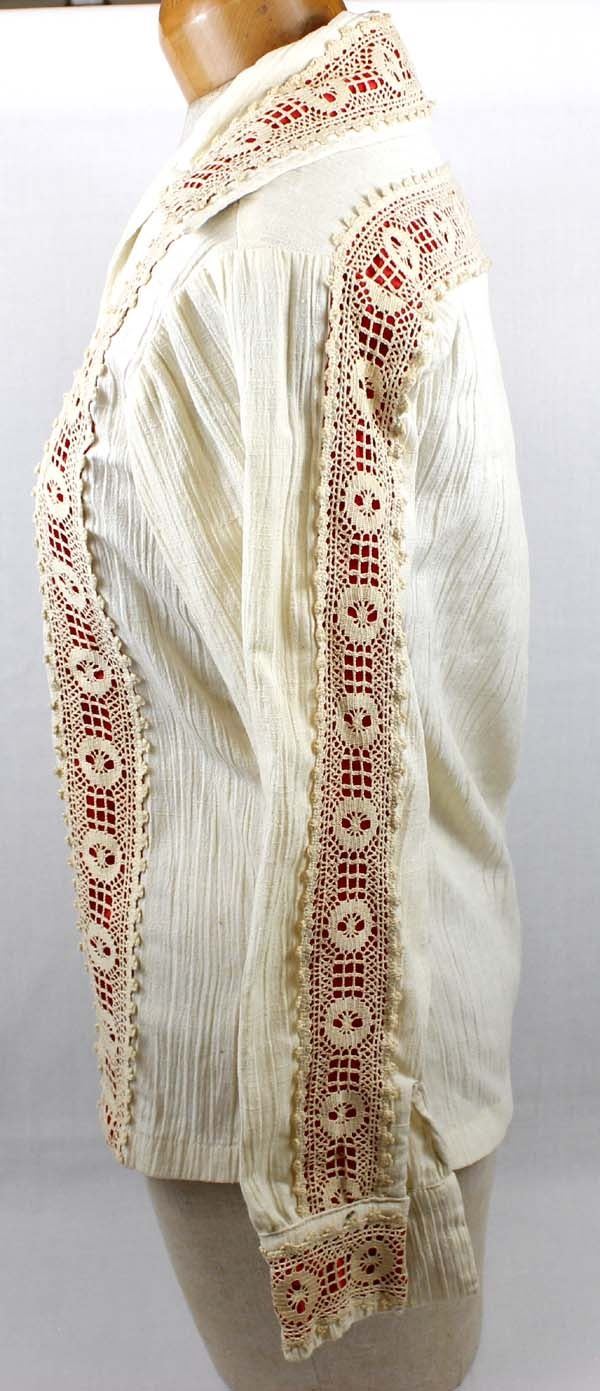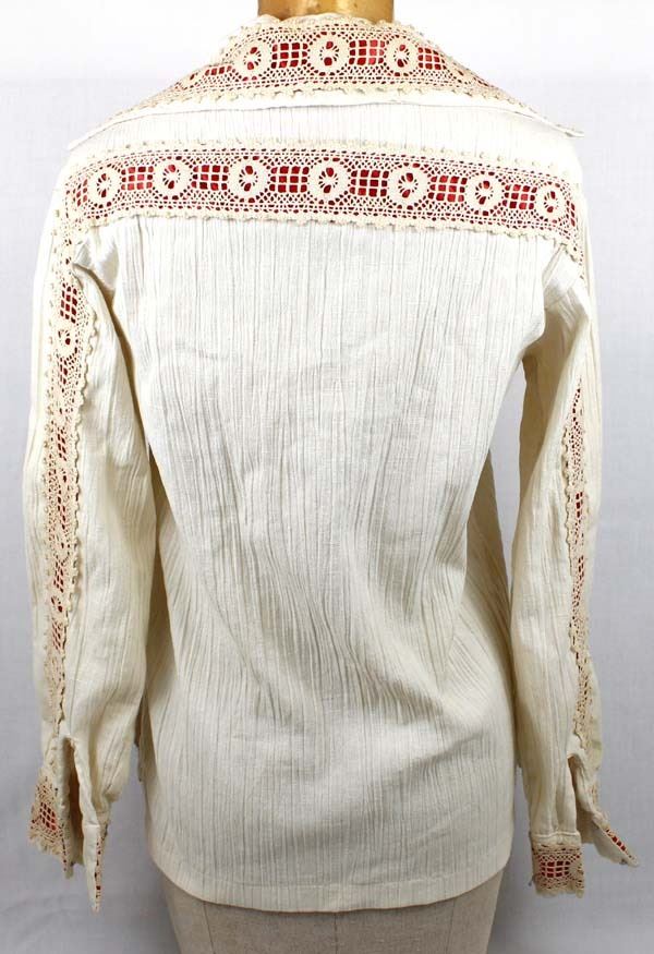 Native American Hand Sewn Navajo Cotton Blouse with Crocheted Lace Trim, chest measures 38'', shoulder to waist measures 24''
