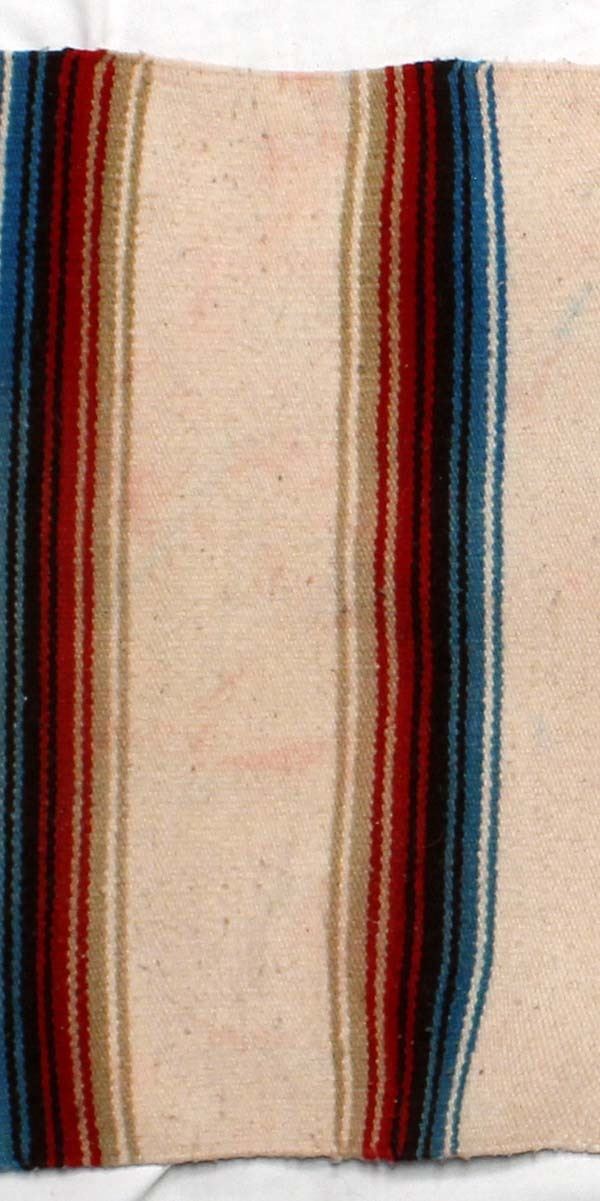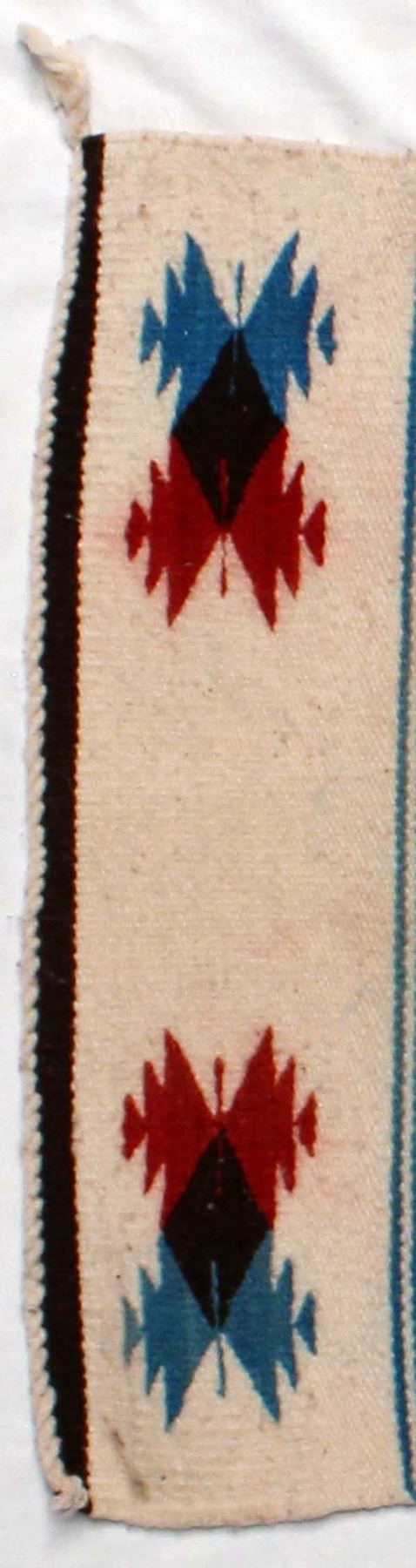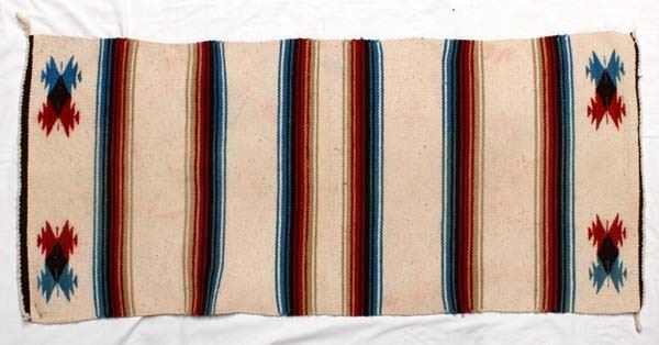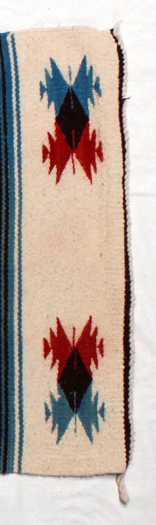 Navajo Cotton Twill Textile Rug. This piece has Stylized bird designs with the selvage in good condition. Does have 2 missing tassles & some bleeding. Measures 27'' x 60''