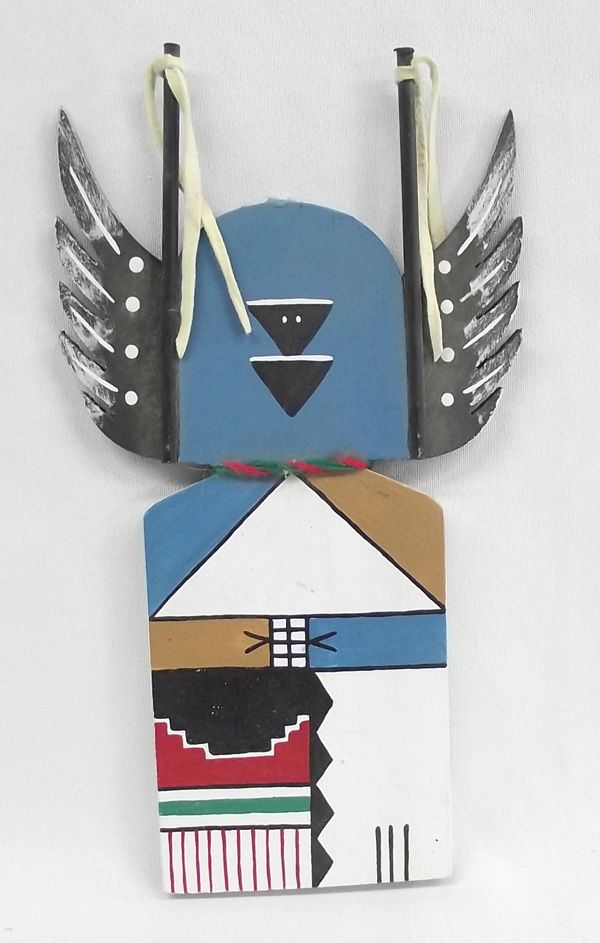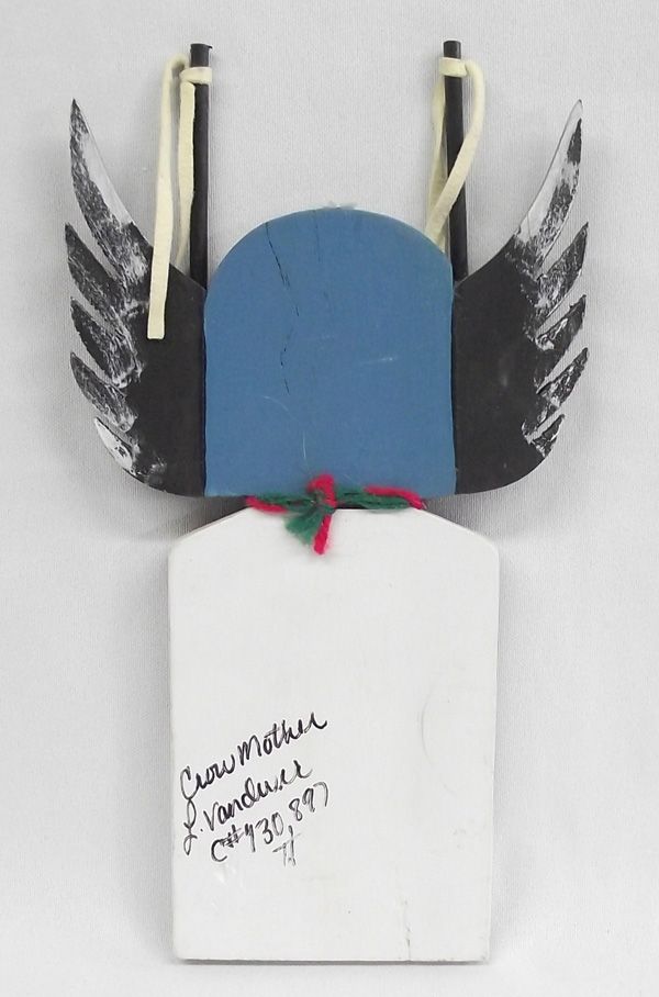 Navajo Cradle Board Crow Mother Kachina - L. Vandever. 9.5''H x 5.5''W, flat kachina. Bright colored and could be hung to display
