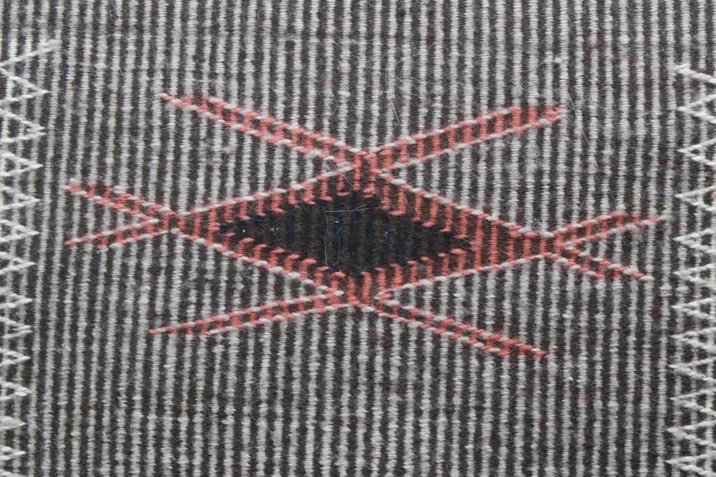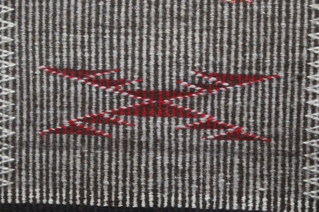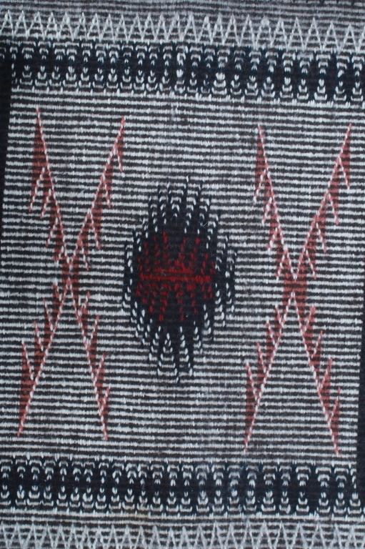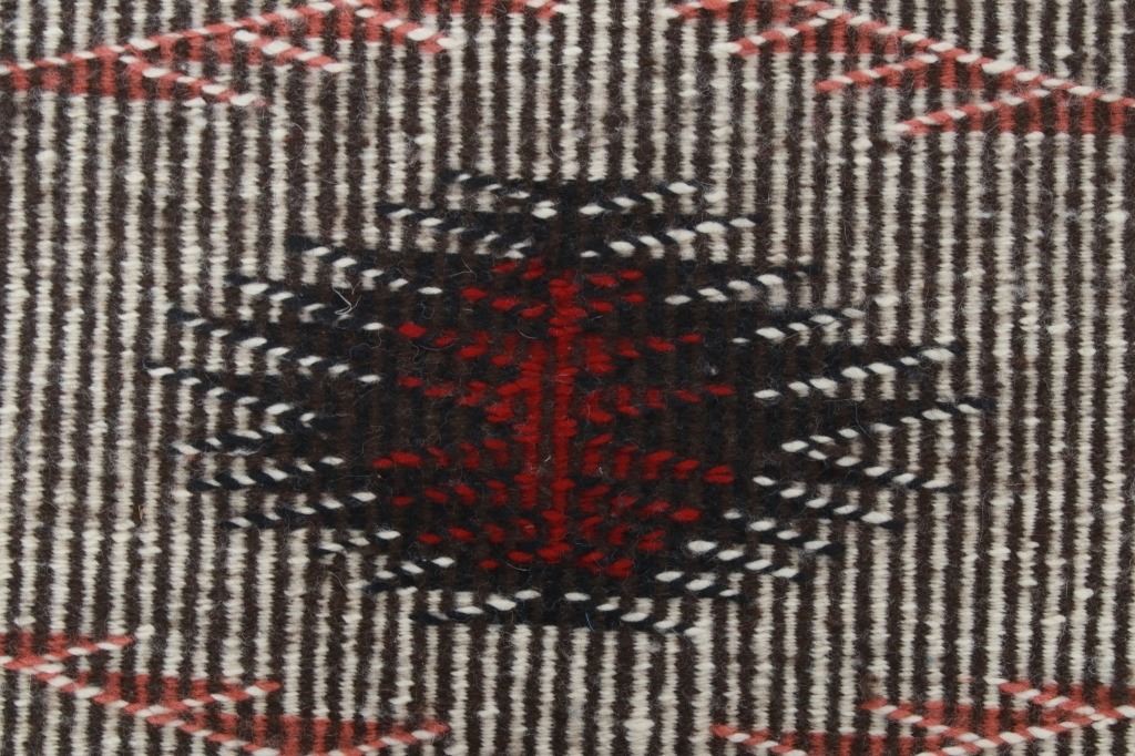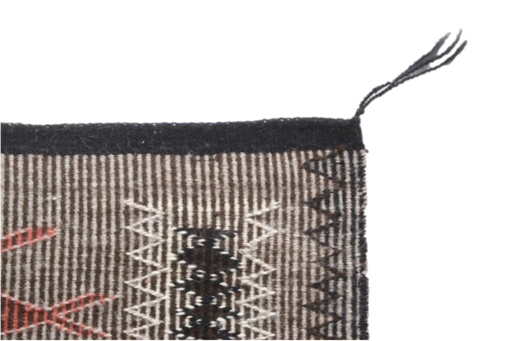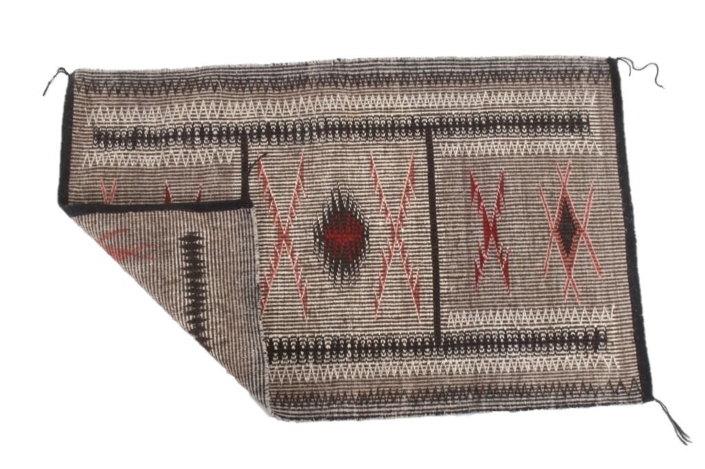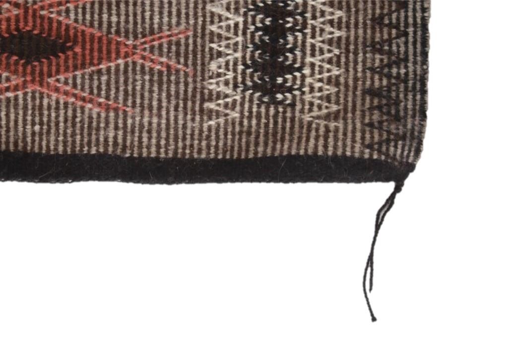 Featured in this lot is this Navajo crystal eye dazzler trading post rug. The rug shows a wonderfully and professionally crafted wool construction with iconic decoration with crystal designed decoration to the central medallions and shows a pinstripe design the the rugs field. The coloration of the rug shows white, brown red and black colors throughout the rug. The condition of this rug is good with no obvious signs of damage and in good overall condition. The measurements of this rug are 49" x 29".