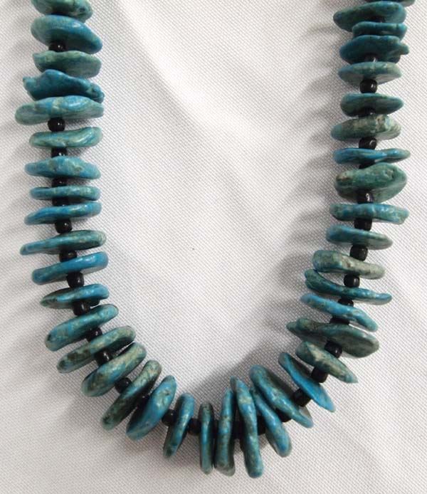 Native American Navajo Design Stacked Turquoise Nugget Necklace, measures 28'' end to end, largest bead measures 1''D, beautiful turquoise
