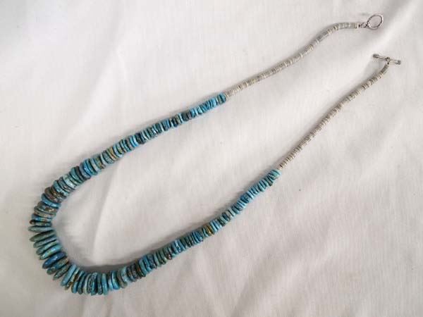 Native American Navajo Design Turquoise & Heishi Necklace, measures 26'' end to end x .5''W, absolutely stunning colors