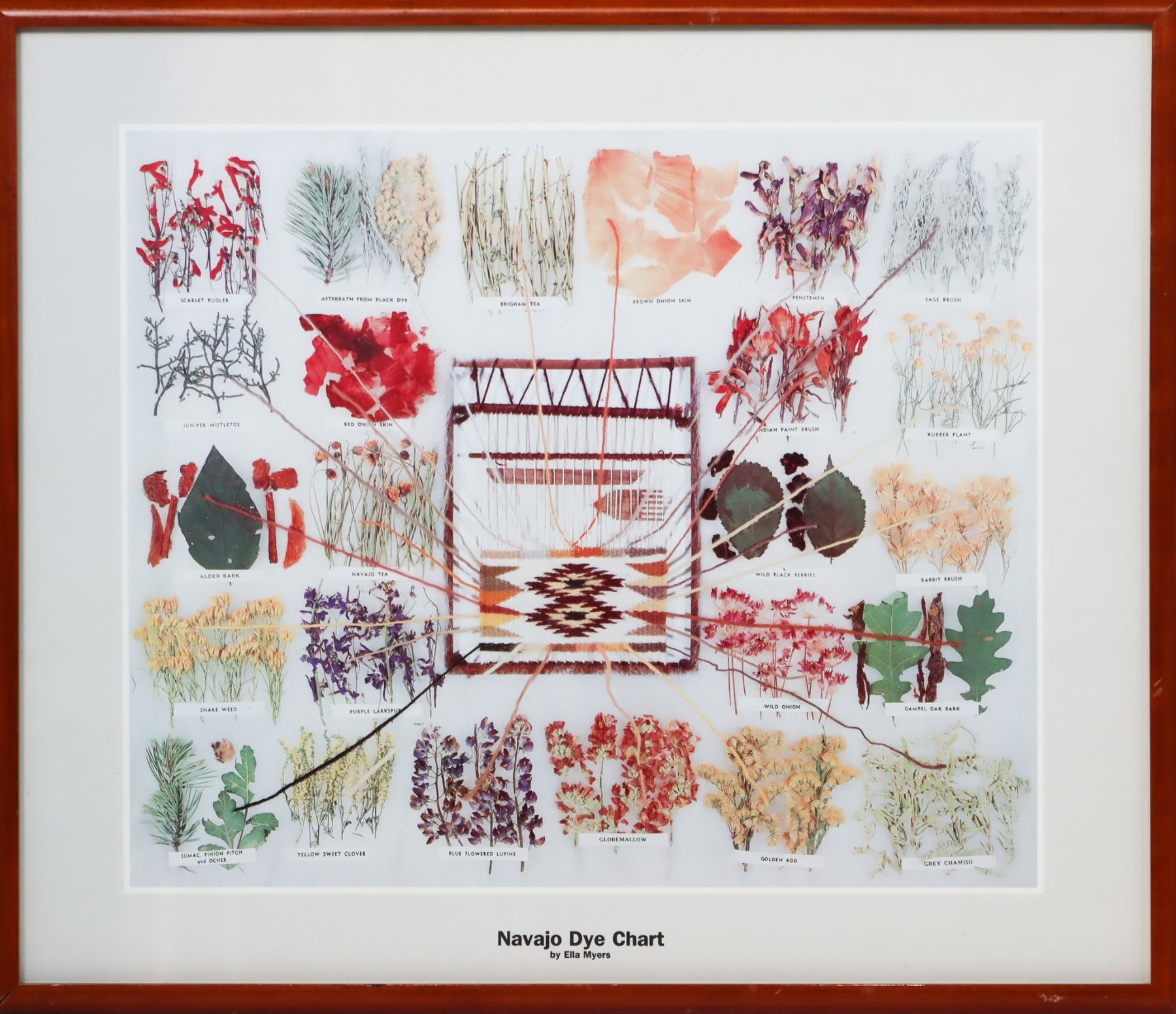 Dye chart print identifying the various plants used in the coloring of Native American textiles.