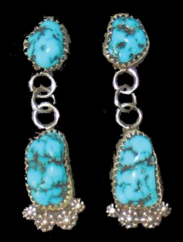 Circa 2000, Sterling and natural Morenci turquoise earrings, signed; post-style. 1-1/2"