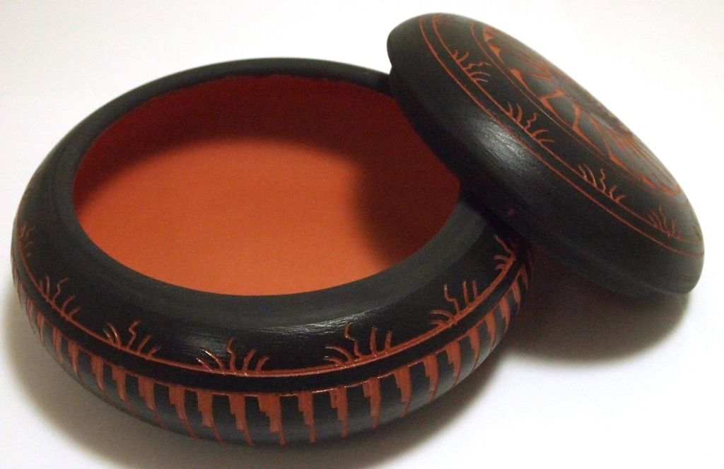 Navajo Etched & Hand Painted Pottery with Lid - Bert