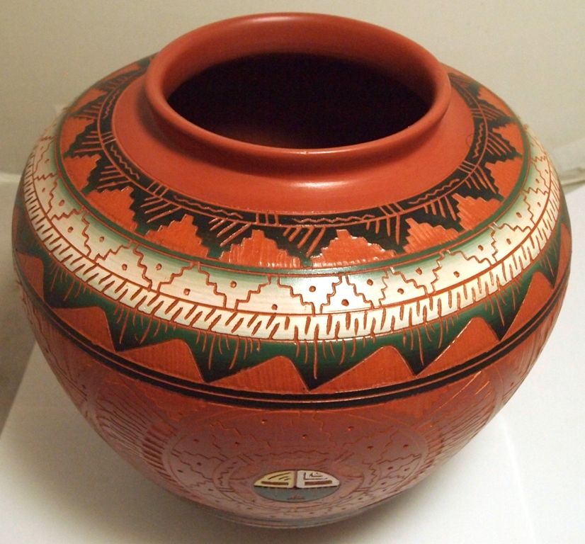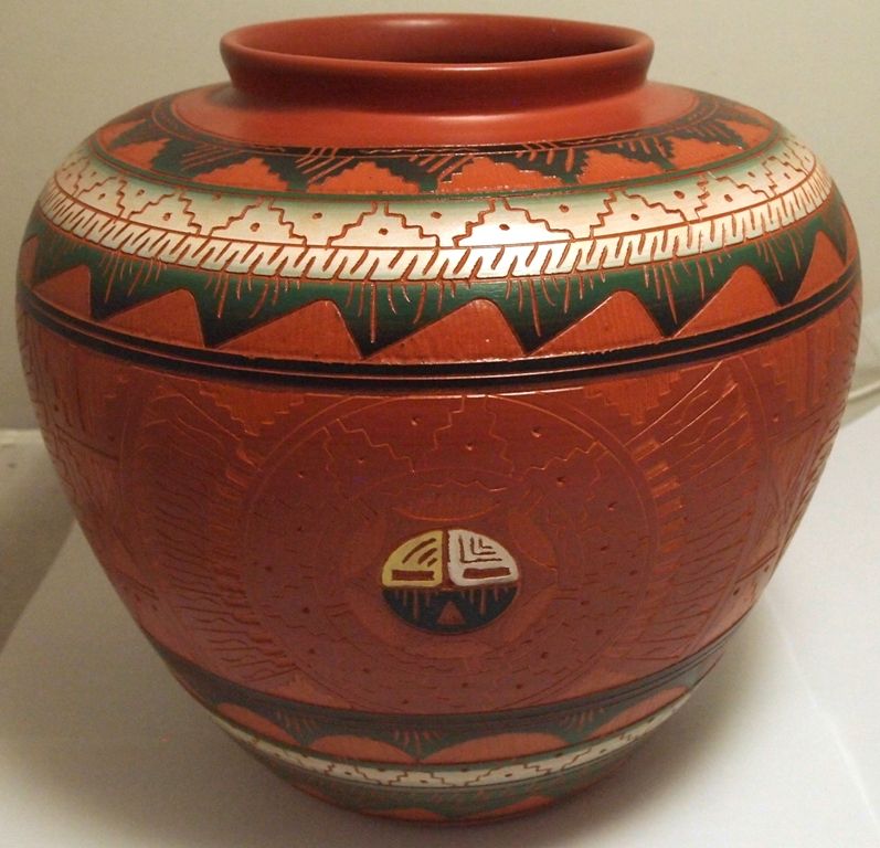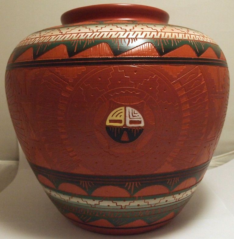 Navajo Etched & Hand Painted Sun Face Pottery - Casey Morgan