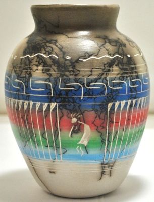Navajo Etched Kokopelli Pottery - Russell Sam