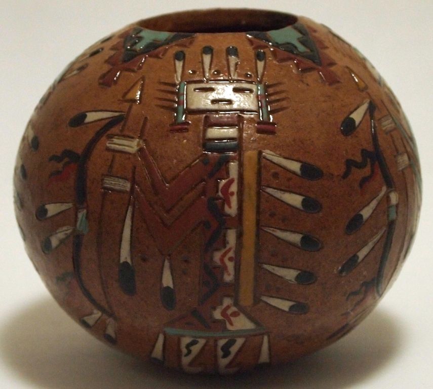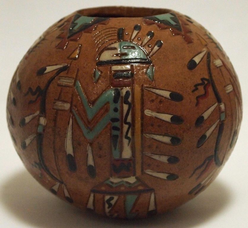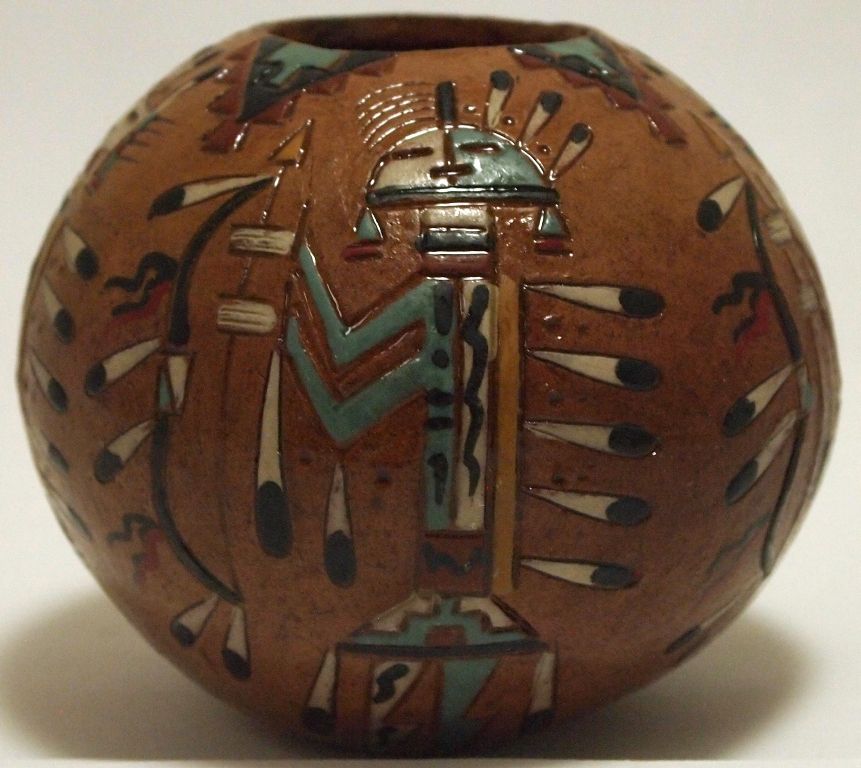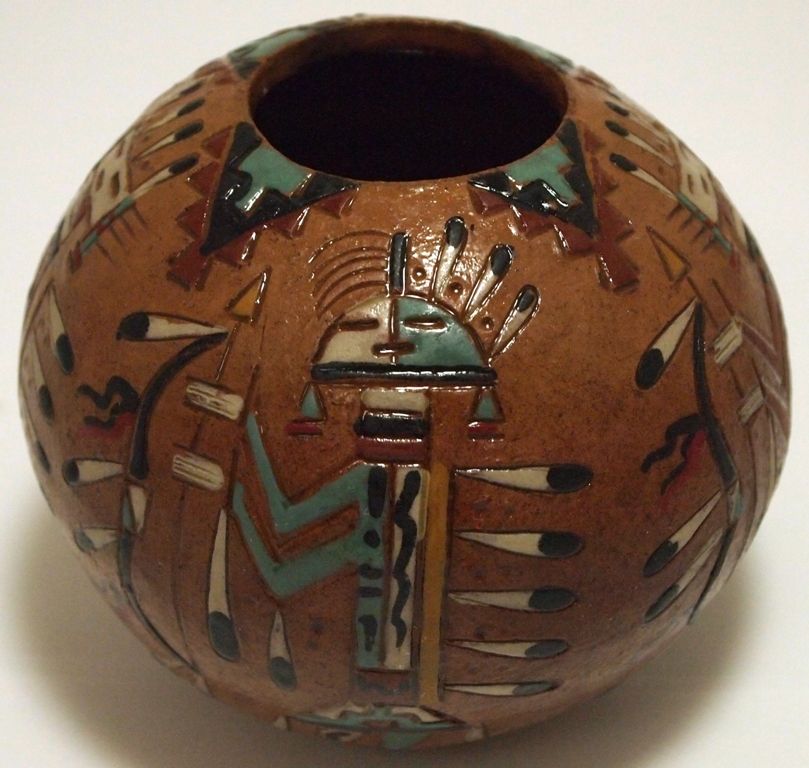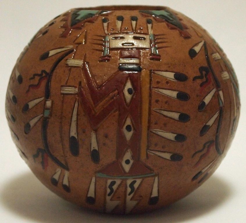 Navajo Etched Painted & Finished Yei Pottery - Nancy Chilly