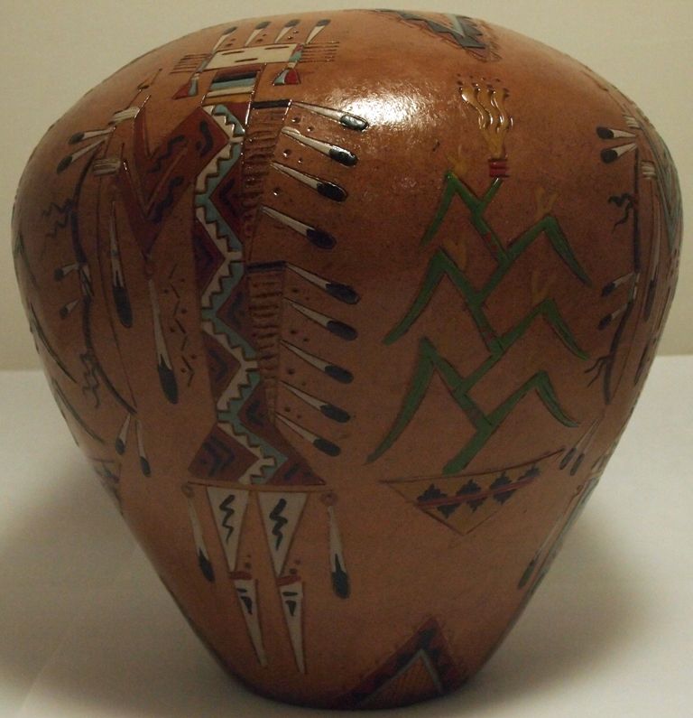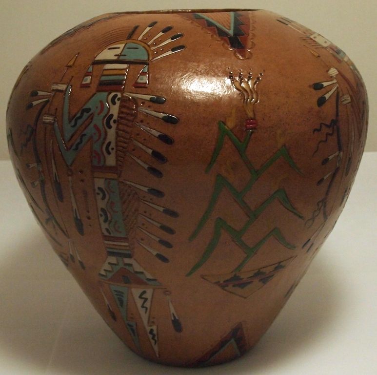 Navajo Etched Painted & Finished Yei Pottery - Nancy Chilly