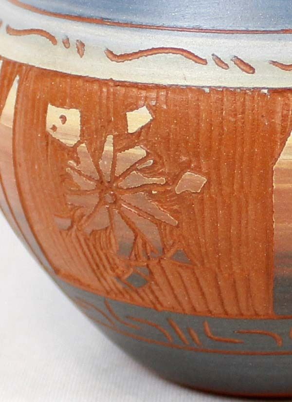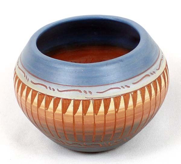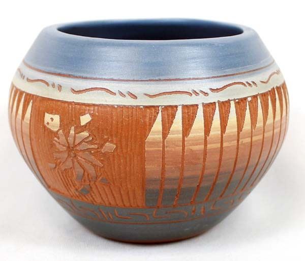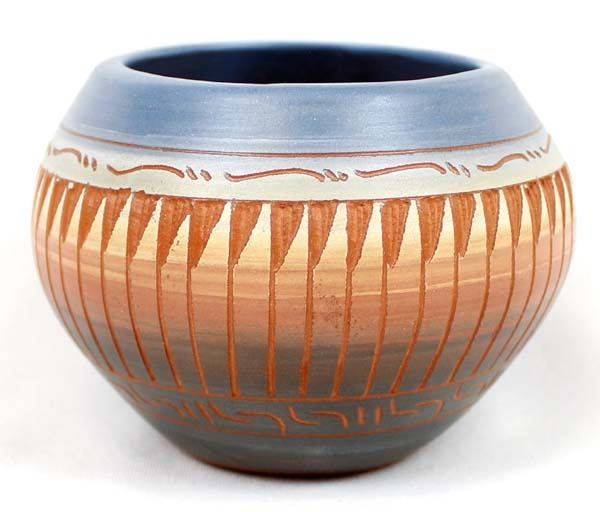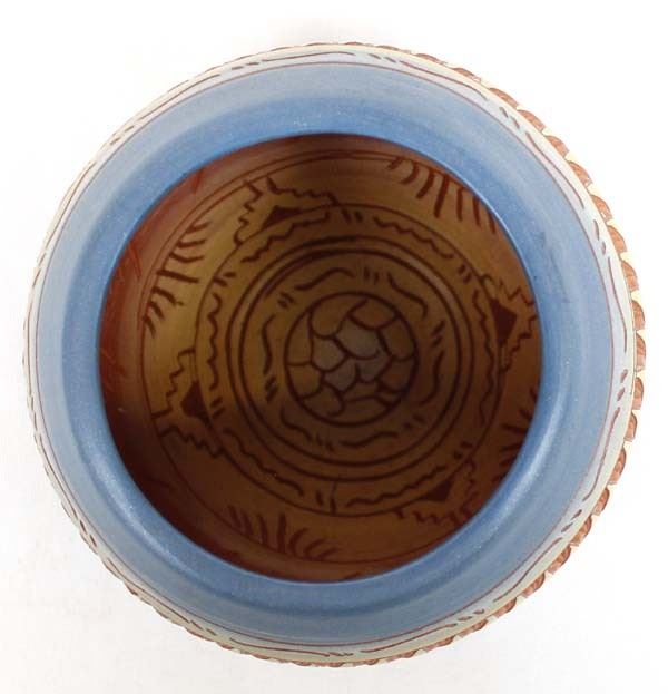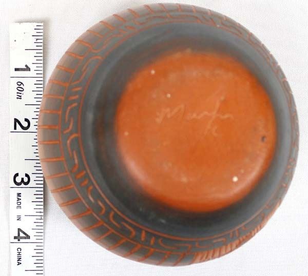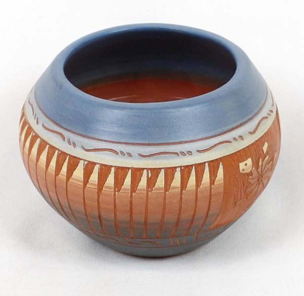 Navajo Etched and Hand Painted Bowl Signed by Artist. Hand painted inside and out. 3 1/2'' x 5''.