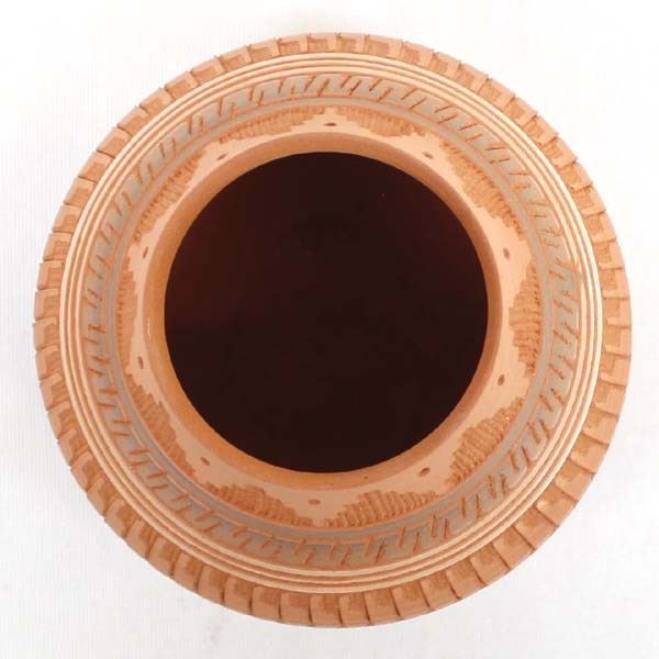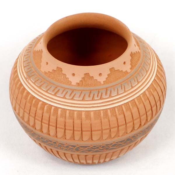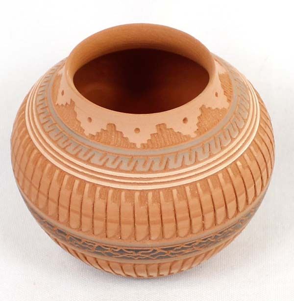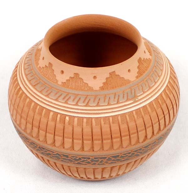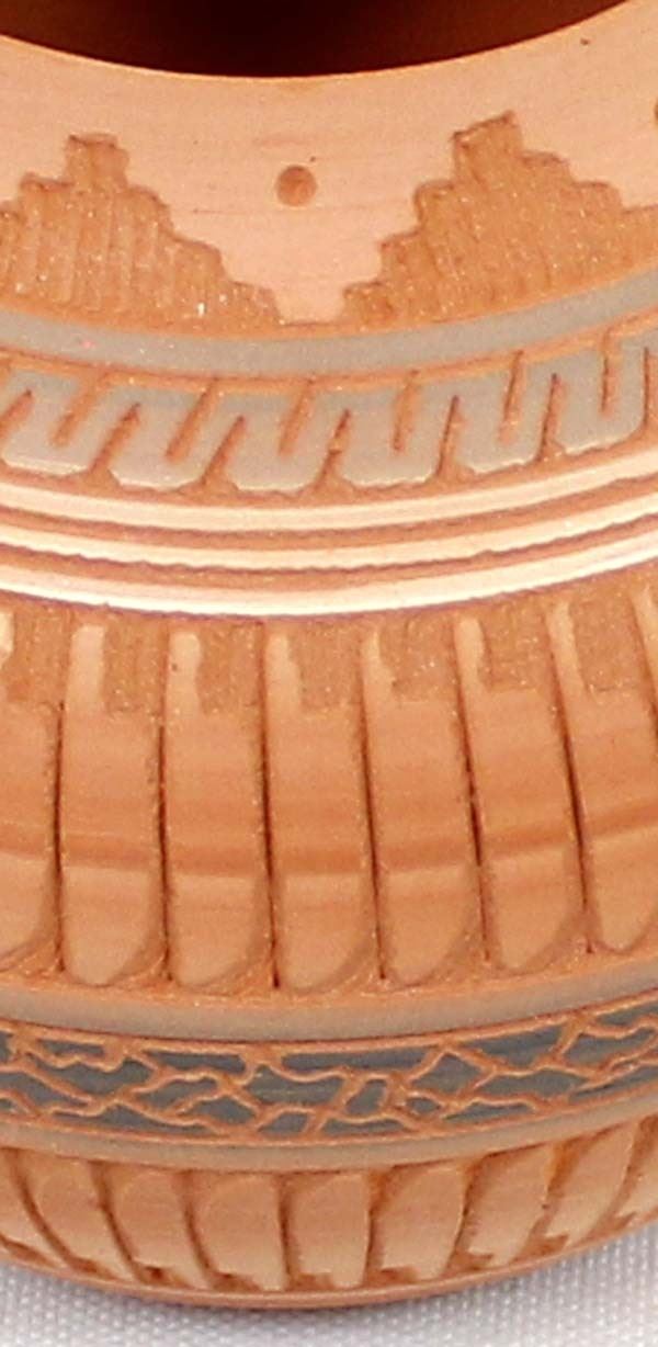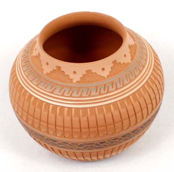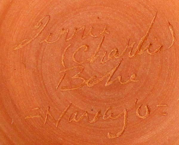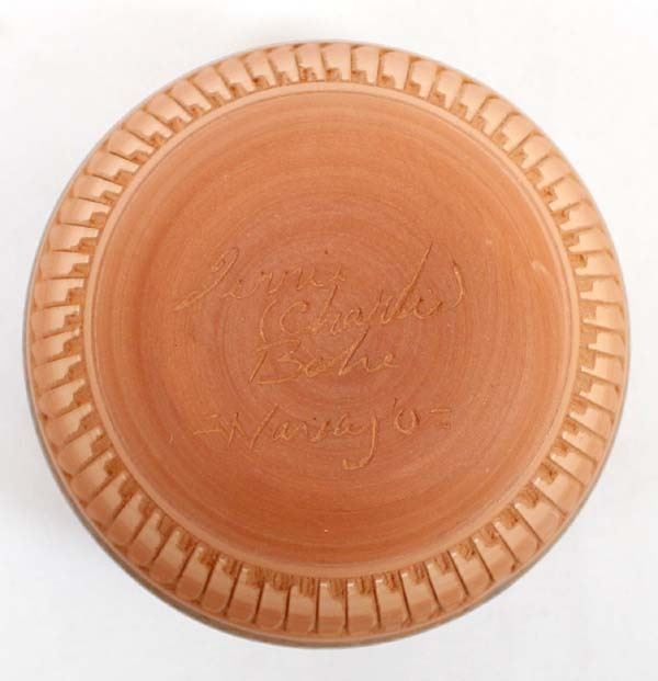 Navajo Etched and Hand Painted Bowl Signed by Terri Charlie Behr. 3'' x 3 1/2''.