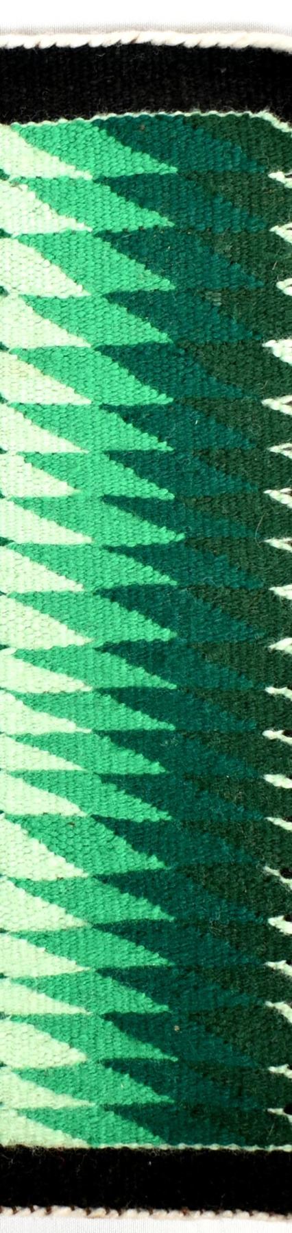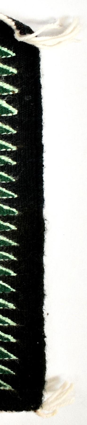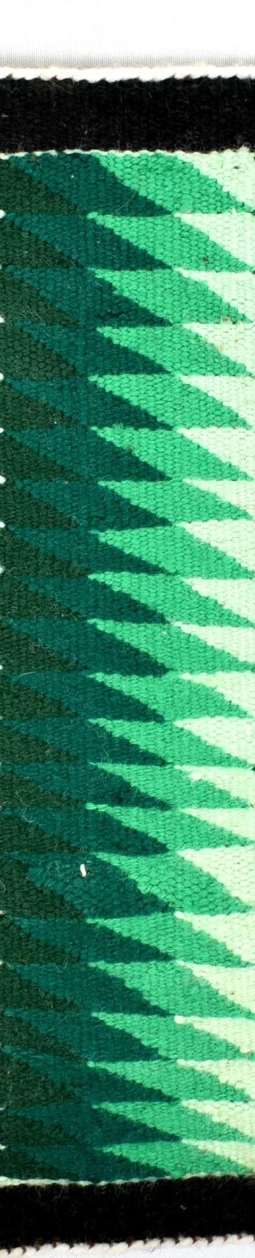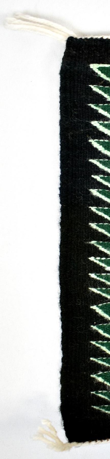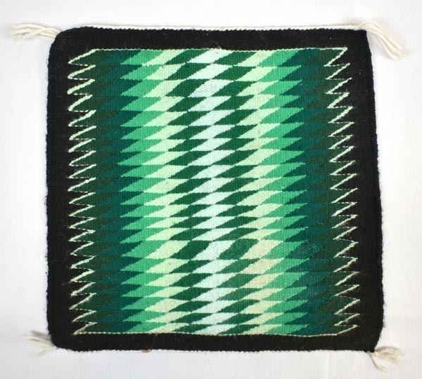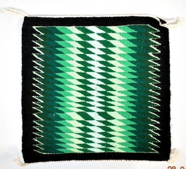 Native American Navajo Eye Dazzler Wool Textile Sampler Rug, measures 14'' x 14'', four cornered tassels intact, beautiful hues of green