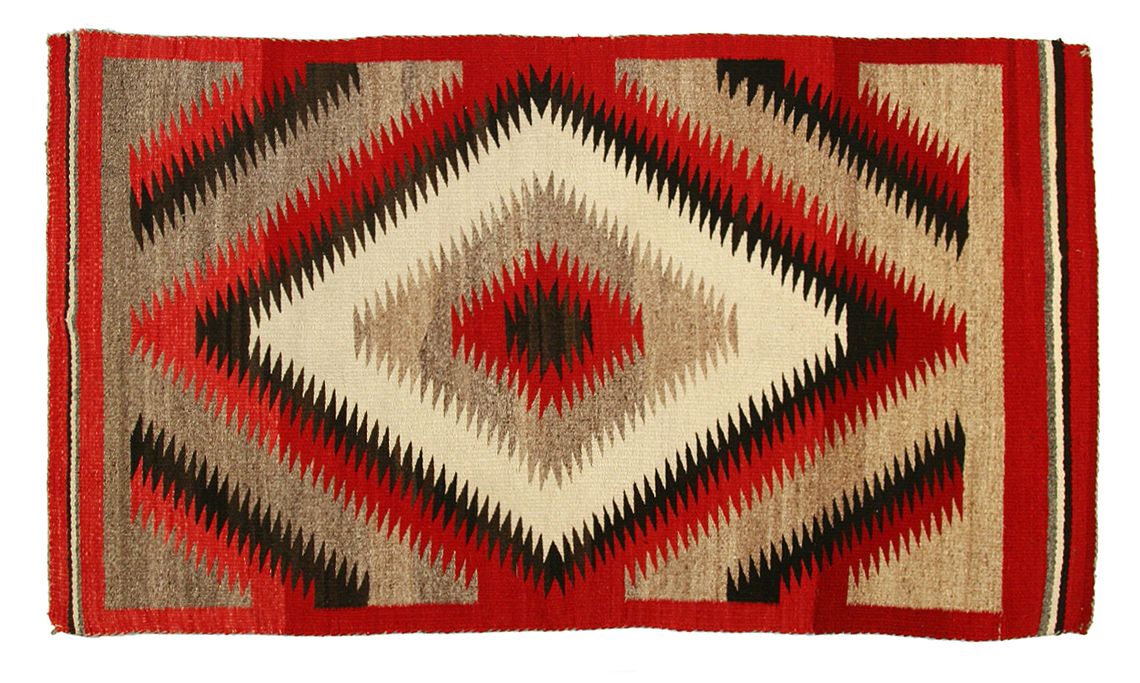 Navajo Eyedazzler Weaving. 5'10" x 3'4". Single diamond eyedazzler design. Homespun wool. Circa 1930-1940. (est. $900-1,200). CONDITION REPORTS: www.auctioninsantafe.com/docs/cr2012.pdf
