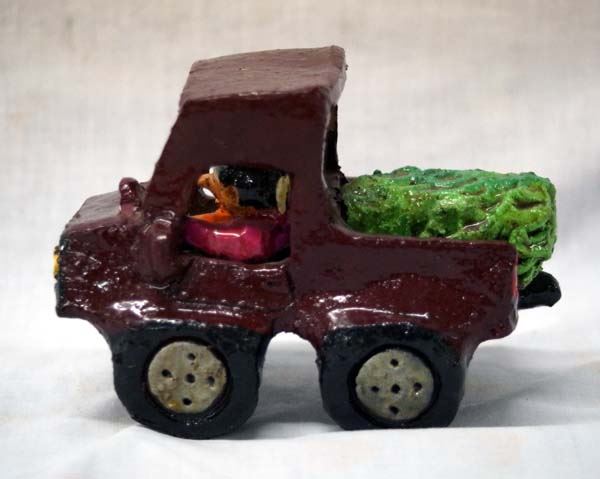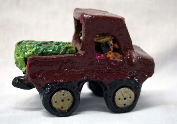 Navajo Folk Art Pottery Pick Up Truck by Jonathan Chee, measures 4''H x 3''W x 5''L, signed on the bottom JC