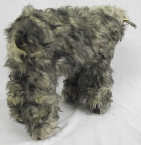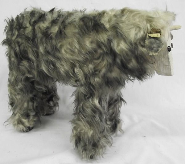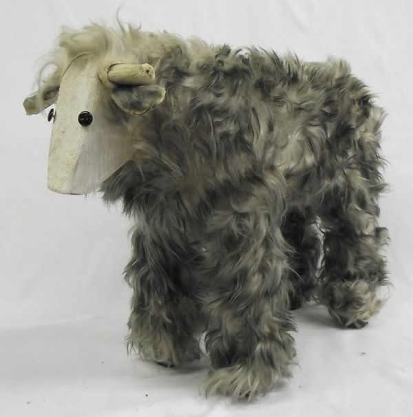 Navajo Folk Art Wood and Fur Sheep Statue. This is a fur covered wooden sheep with one horn broken off (the horns are real). It measures 13''H x 17''L.